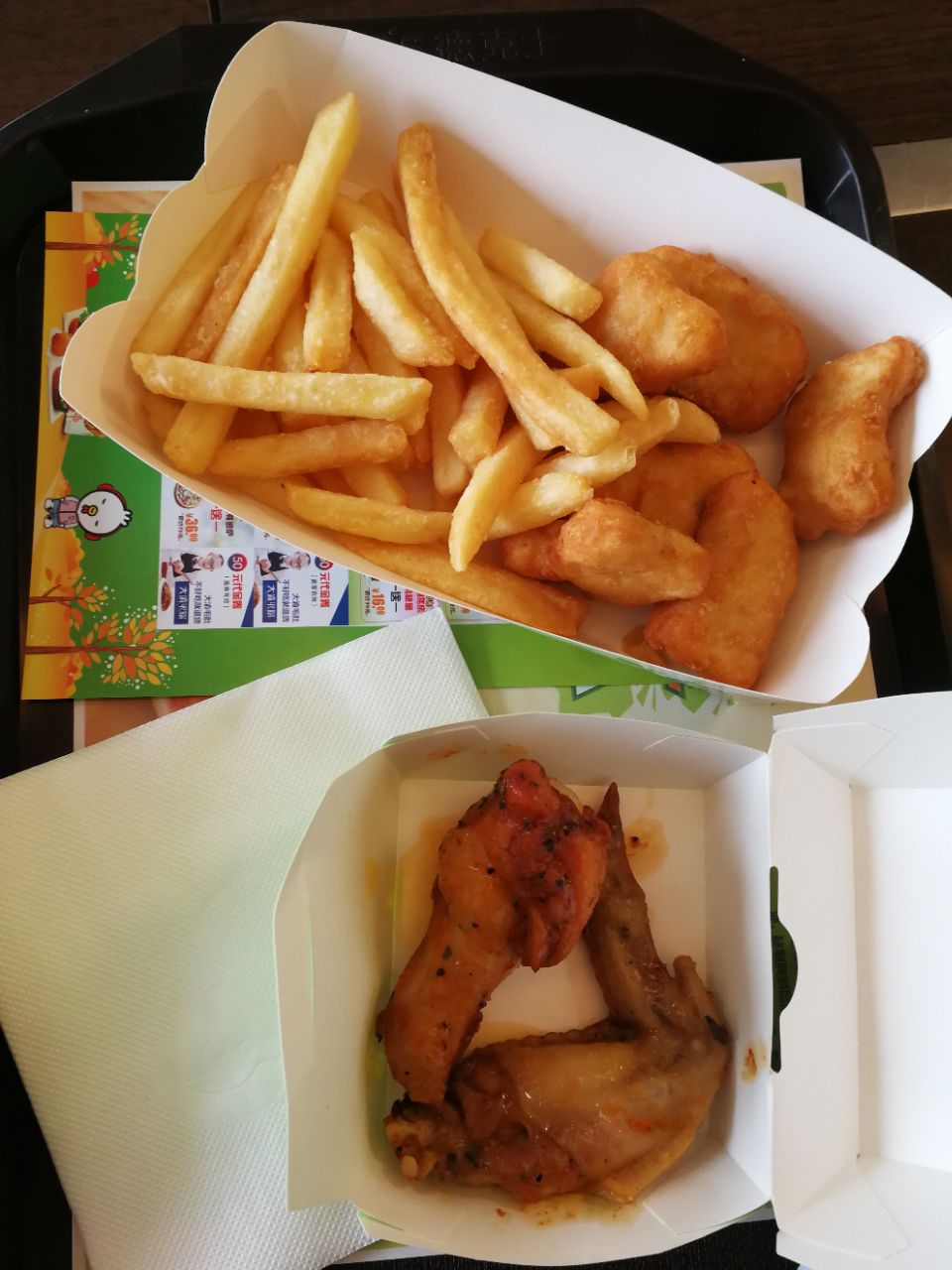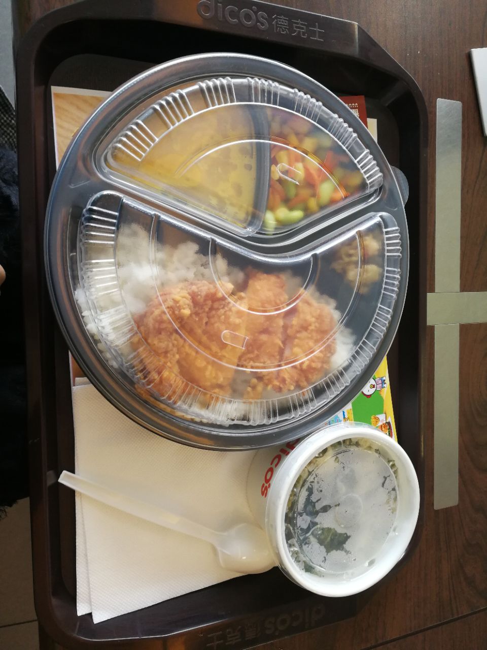 网友2018-11-16薯条炸的很好吃,咖喱鸡腿饭每次来都点这个。要的咖喱鸡腿饭,配紫菜蛋花汤,套餐一共十五元要的咖喱鸡腿饭,配紫菜蛋花汤,套餐一共十五元。还有南美卡兹小食盒。薯条炸的很好吃,咖喱鸡腿饭每次来都点这个。出餐很快,服务态度热情。