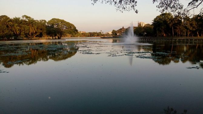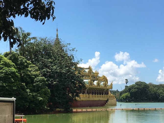 仰光大金塔东面的人工湖,环境优美,是远眺大金塔的好地方,可以看到圣山全貌,更是一个观看落日的好地方