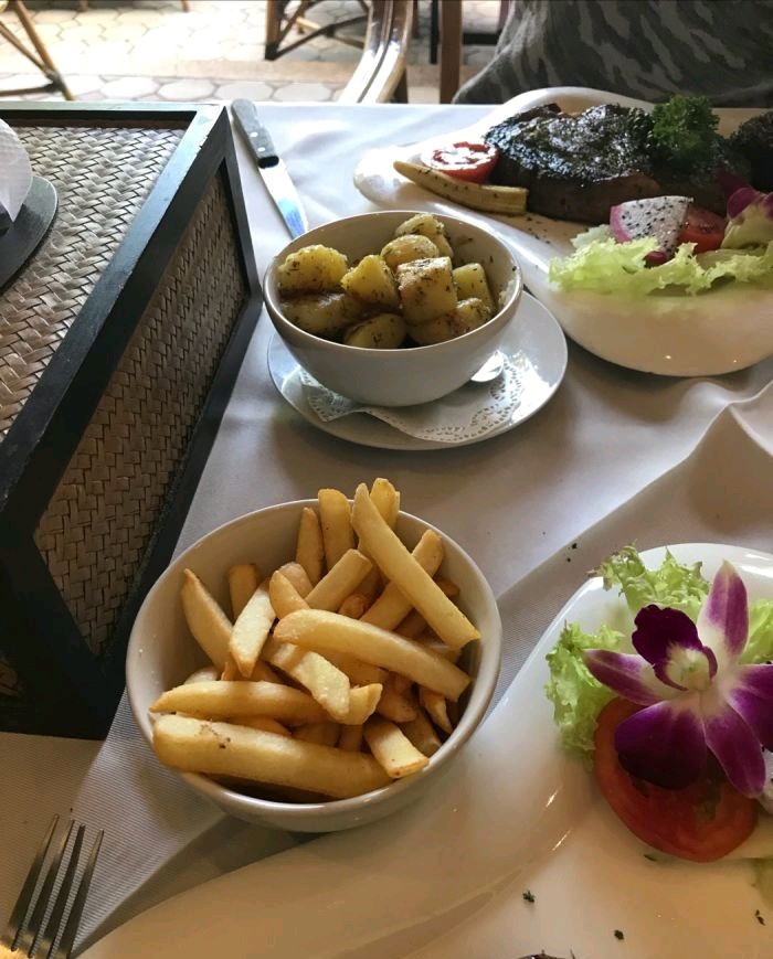 ...得出来看到一个牛排店,挺不错的,美式风格牛排很大一块,虽然品质一般,不过也算对胃比较舒服的一顿甲米吃饭一般都是在酒店里面,难得出来看到一个牛排店,挺不错的,美式风格牛排很大一块,虽然品质一般,不过也算对胃比较舒服的一顿。