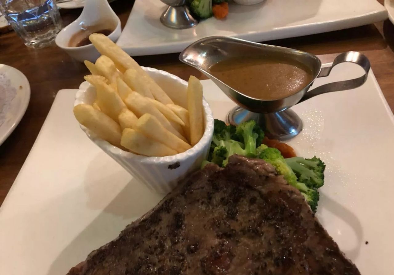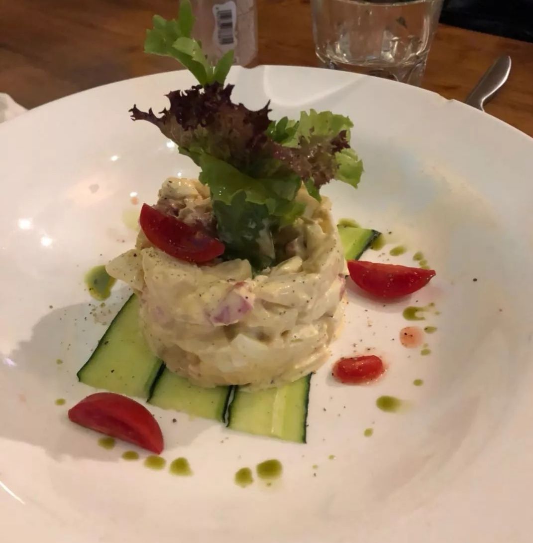 一家很正宗的西餐厅,团购了双人餐,土豆沙拉造型不错,味道也很棒,牛油果虾卷味道稍微有点淡,但是...一家很正宗的西餐厅,团购了双人餐,土豆沙拉造型不错,味道也很棒,牛油果虾卷味道稍微有点淡,但是馅料充足。牛排要的七分熟,肉很嫩,甜品味道也不错,奶油一点也不腻,很清爽。