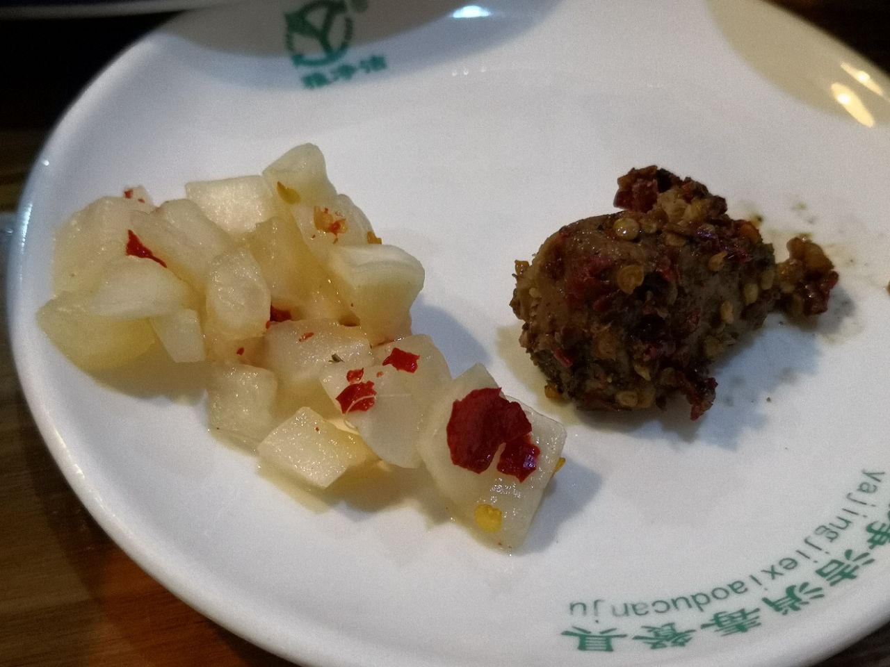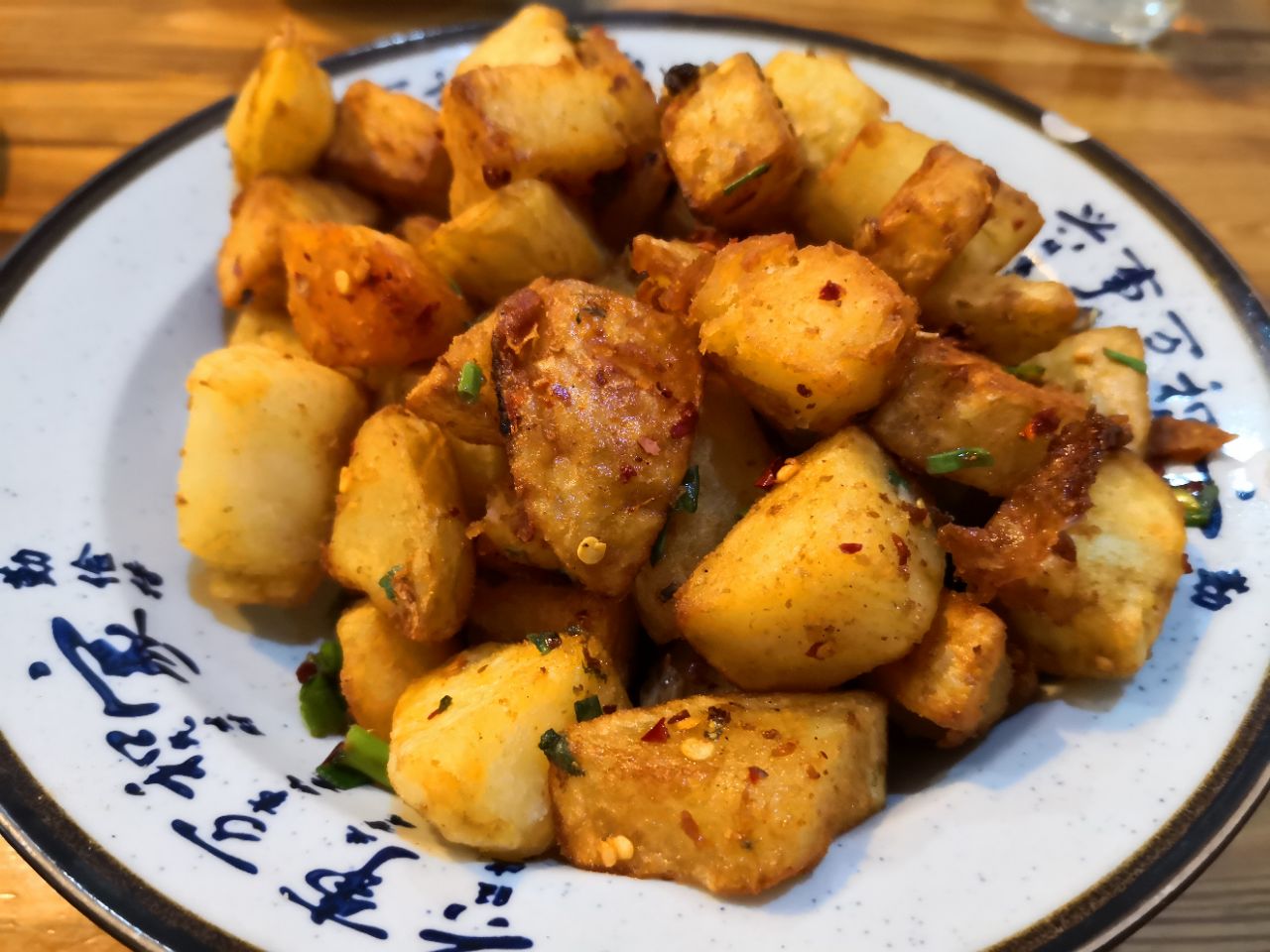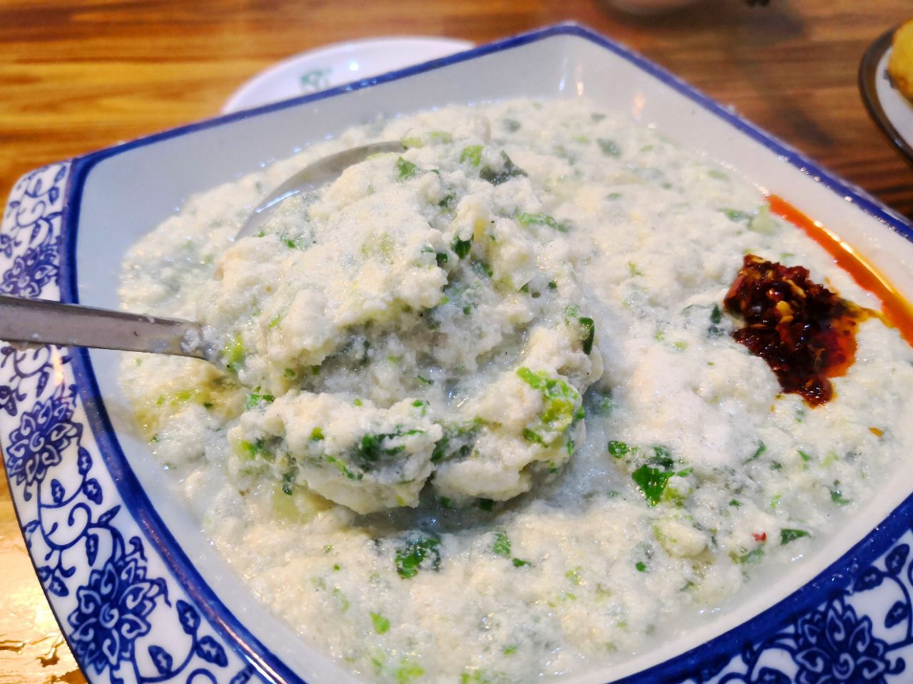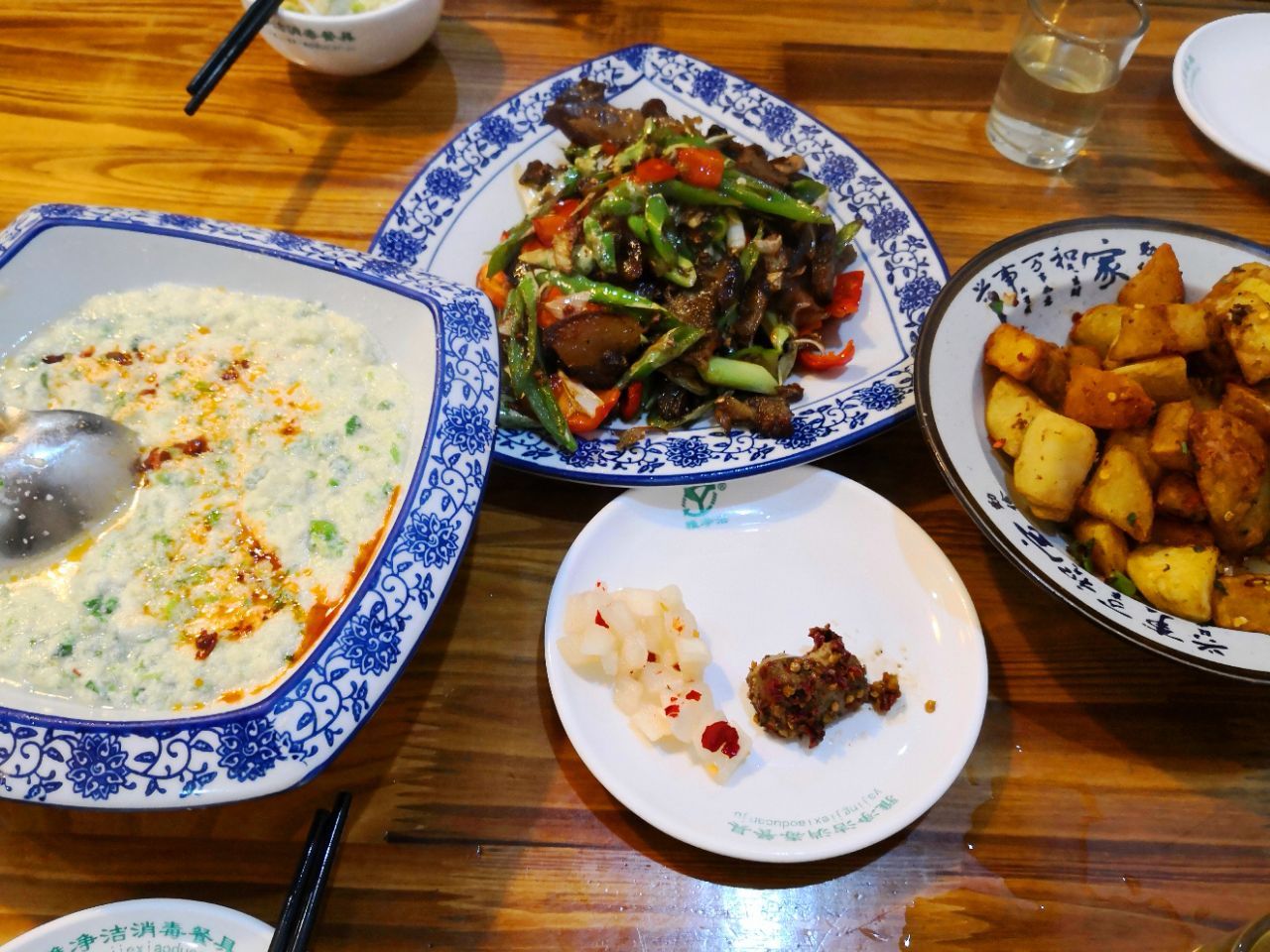 如果太忙,又不想做饭,在附近选一家小餐馆就餐,不会有雷点,我多半选择文苑土家,这家有着二十年历史的小店,有着地道的恩施土家风味。 小土豆,生长于恩施的高山,富硒。点的是炕土豆,表皮有焦脆感,内里是粉糯的,有点椒盐香。小炒猪脸给的份量还是很不错的哈,下饭。乳白带绿撒一点红椒的这一碗叫做合渣,是恩施人度荒年的美味,彼时土家族流传着“辣椒当盐,合渣过年”的民谚,磨好的豆浆兑水加上切好的青菜丝煮开,就是一道美味,因为做法比豆腐简单,又名懒豆腐。其实其他地方也有类似的做法,只是配料上有所区别,而产生的缘由多半是那个年代太穷,没得吃,只好通过这种方式来填饱肚子。 一爿小店,数十年光阴,周边社区居民也从青年步入了中年,而他们还会在这里喝酒畅聊,不知岁月忽已晚。 中午客人众多,翻台数次,晚上人少,建议晚餐。