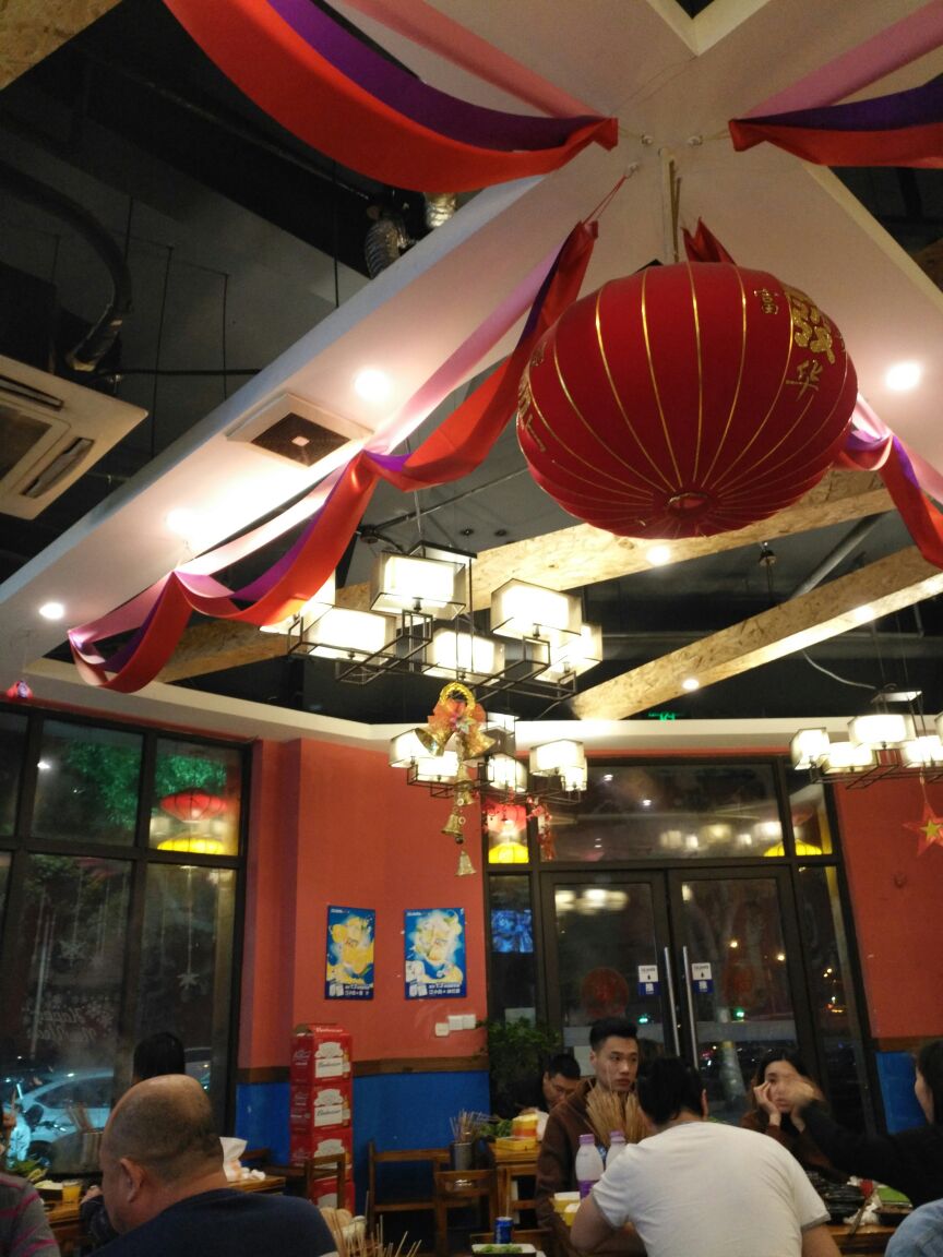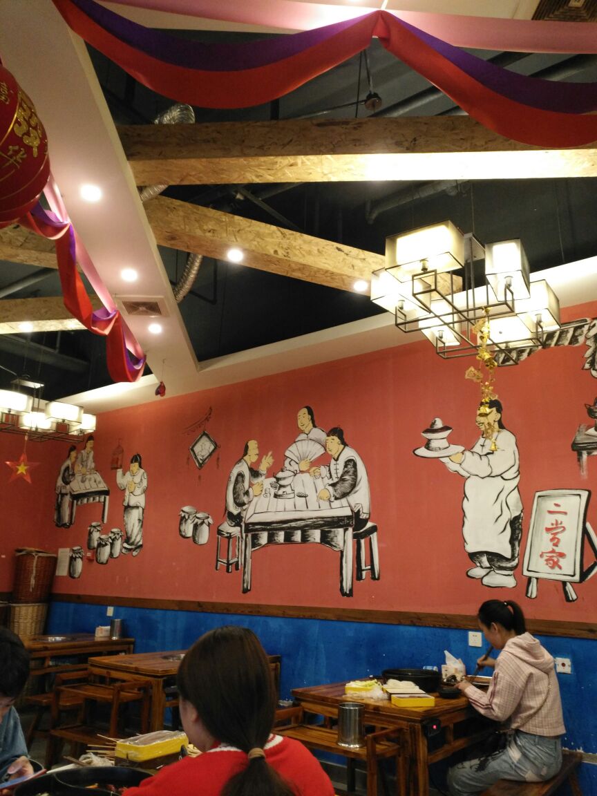 这家店生意很好,走的时候满满当当全是人,座无虚席。装修的很有特色,墙上很多壁画。这家店在宝龙的对面