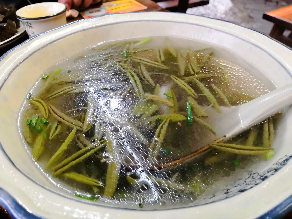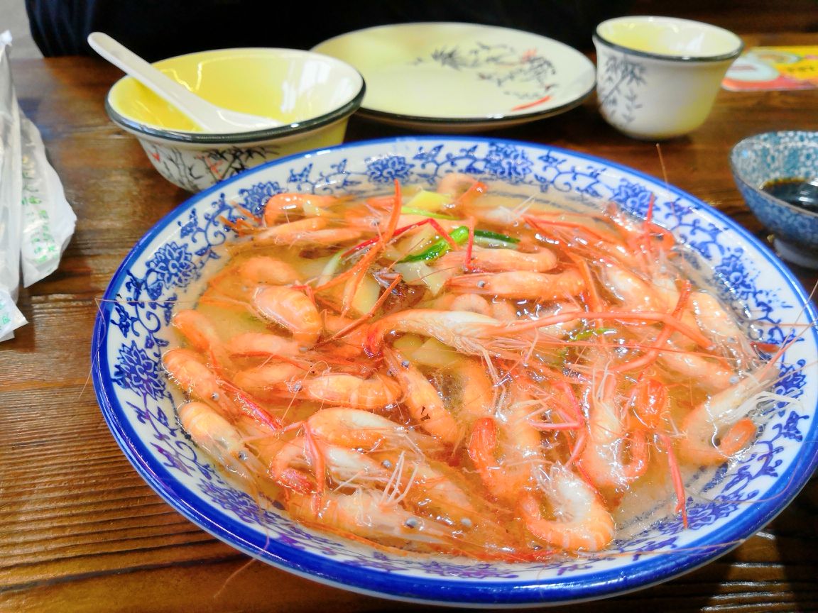 田螺塞肉:田螺特别大,肉丸和田螺肉融合到了一起,鲜香可口。 野生河虾:可以做盐水或者油爆的,很新鲜。 清蒸白鱼:肉质鲜嫩美味。 莼菜银鱼汤:莼菜滑滑的,味道不错,就是银鱼略少。 小店临街,天气不太冷的话坐在水边吃很惬意。