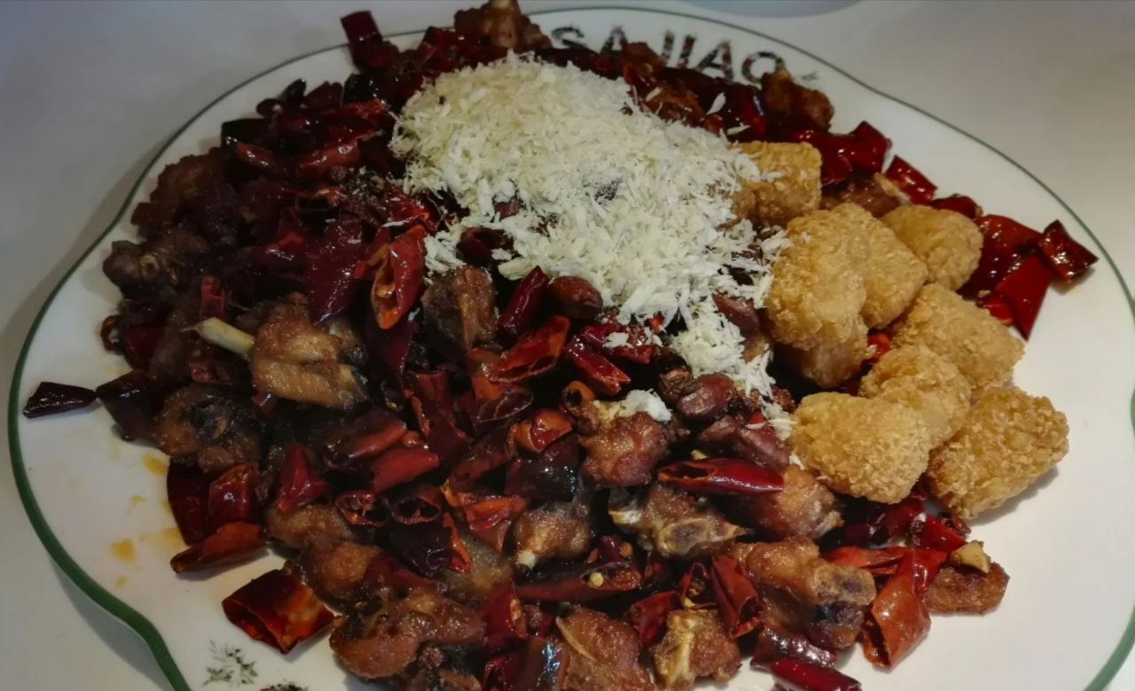 撒椒音同撒娇,名字蛮有特色的,位置也蛮好找的,在武广的七楼,有直达电梯上,也可以坐扶手电梯慢慢的一层一层逛商场上来,店子不大,菜品还很丰富,很多菜都是小份量的,很适合二三个人,可以多选一些菜,招牌撒椒辣子鸡不错,秋葵配花甲有点特色,酥炸榴莲很小很精致,味道很足,双色糍粑很柔很软,孜然菠菜做法奇特,朋友比较喜欢吃粉蒸素四宝格格,总之还不错