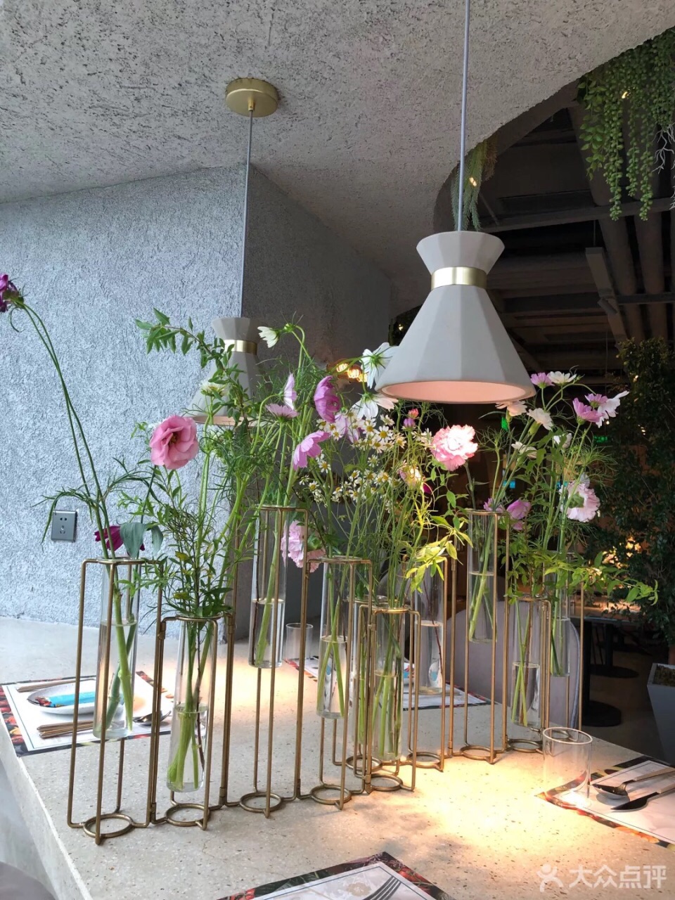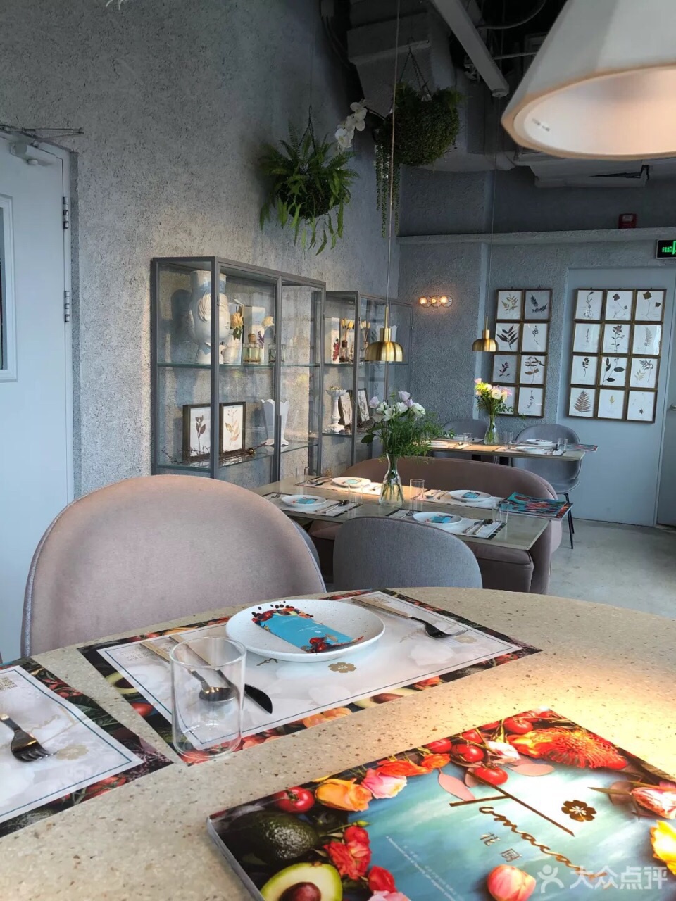 [环境]直对入口门厅的用餐区,墙壁上装饰了120幅植物标本「花厨彩虹卷」颜色诱人「巧克力熔岩蛋糕」好吃「红丝绒蛋糕」就喜欢红色「花厨低温嫩煎猪排」每种酱料都好吃,肉质鲜嫩 [环境]每张餐桌上都装饰鲜花,天花或吊灯处也有花艺陈设,甚至每道菜品送上桌时的大托盘,都点缀迷你花瓶,可能是几枝小花