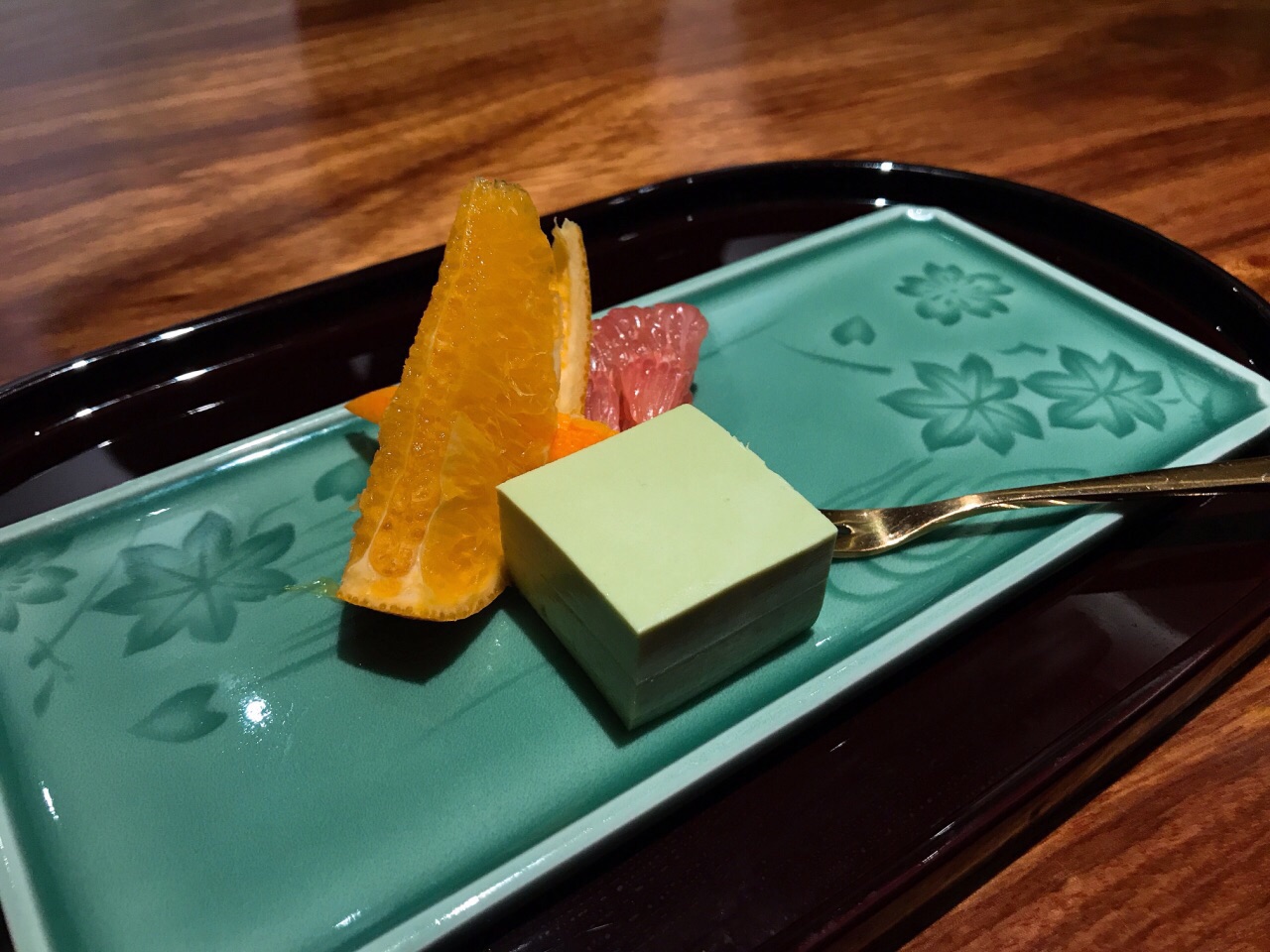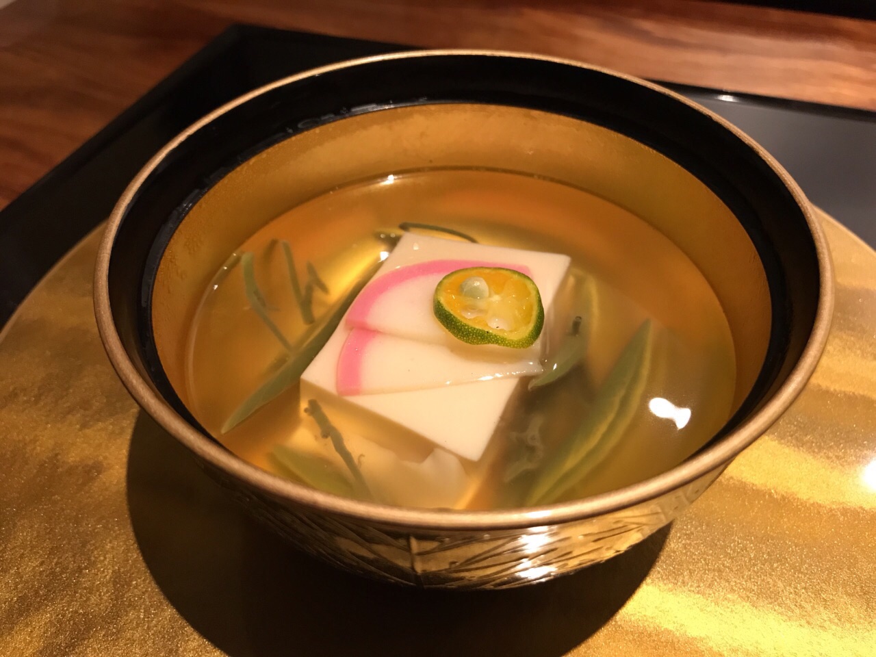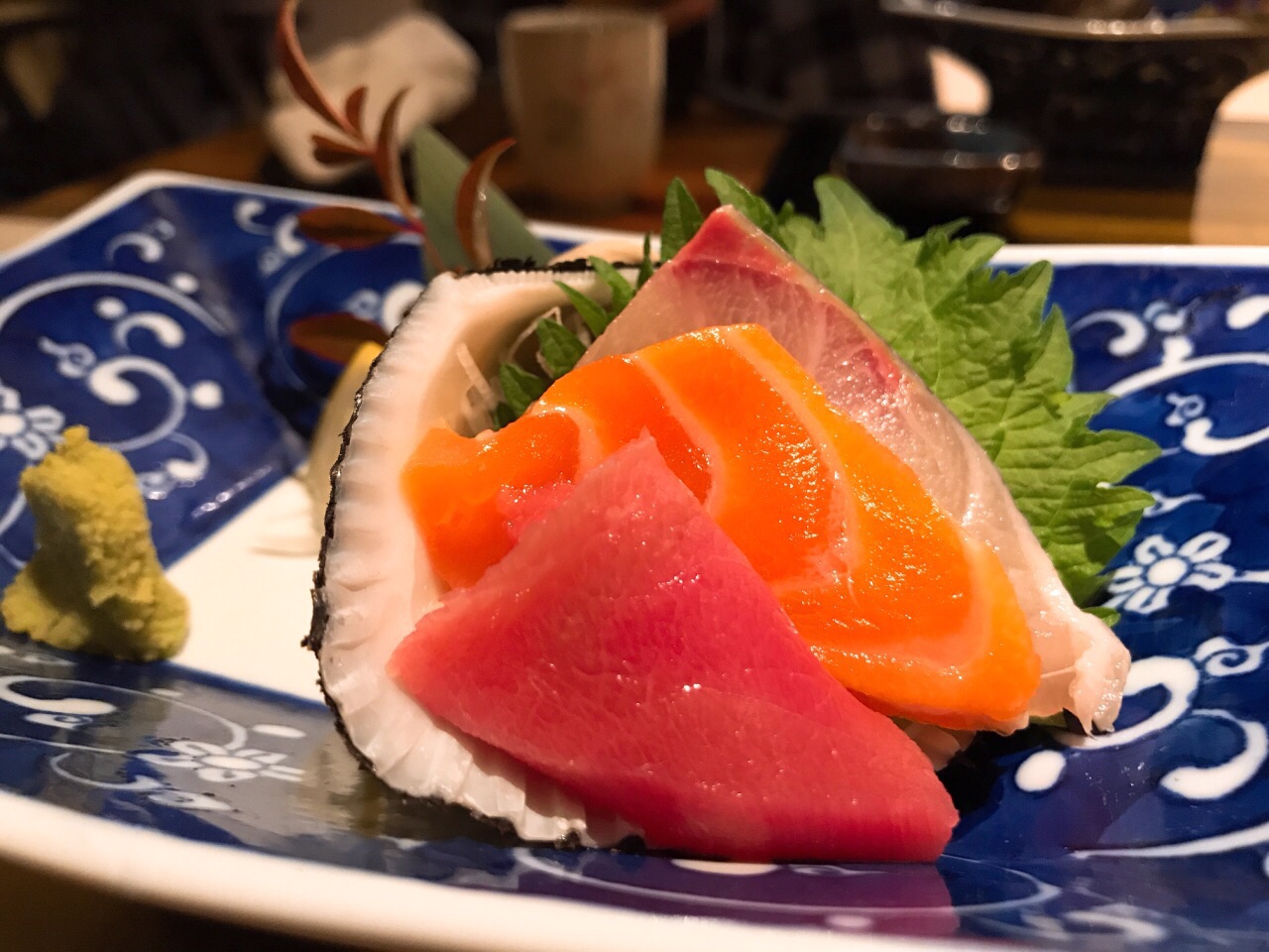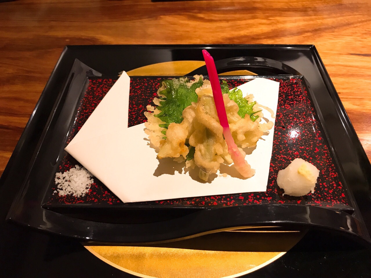 不知该怎样形容涵山道,静立于金汇小镇中,安静而典雅 装修没的说,宁波日料店中数一数二,气质与仿古的小镇很相融 对服务员的培训到位非常难得,日料的礼仪习俗,菜品的简单介绍,这在宁波能做到的店太少了 分套餐和单点,套餐300+和500+两种,单点的菜与套餐不同 前菜:蟹肉鱼糕、南海花螺、黑猪火腿粒 精致的前菜打开味蕾,赏心悦目,微甜梅酒开胃 汤:菌菇莼菜豆腐汤 出汁制成的汤非常鲜美,若咸度稍减更佳,佐以嫩豆腐和莼菜,莼菜本身没有味道,胜在口感圆融、鲜美滑嫩 刺身三品:金枪鱼、大竹荚鱼、帝王鲑三文鱼 应季而食,也是日料宗旨之一,竹筴鱼正当季,金枪鱼中脂质感,三文鱼肥美 煮物:红烧真鲷鱼 鲷鱼煮的真是好吃,鱼肉块厚,但煮入味,连配菜都很赞,香菇吸汁,融合菌菇和鱼的鲜味 天妇罗:牛蒡带鱼天妇罗 天妇罗有巧思,带鱼裹牛蒡,面衣还不错的,除了控油稍稍欠些,总体算是蛮不错的,毕竟天妇罗这东西国内也做不好 沙拉:蔬菜沙拉 比较平常,放一张图秀一下非常好看的碗 和牛:骰子牛肉 油脂丰厚的和牛粒,超赞,如果单点菜单有这道,绝对推荐 寿司三贯:黄鲥鱼、甜虾、玉子烧 寿司并不佳,并非寿司专门店,所以也不必要求太高,其实可以试试换成散寿司饭,难度降低一些,三四郎玉子烧有点小惊艳,一口咬下两种口感,很赞 甜品 常规的抹茶布丁,有点小,味道较淡,抹茶的清苦香味稍不足 器皿相当精致,环境雅致,服务周到,仍然有许多亮点
