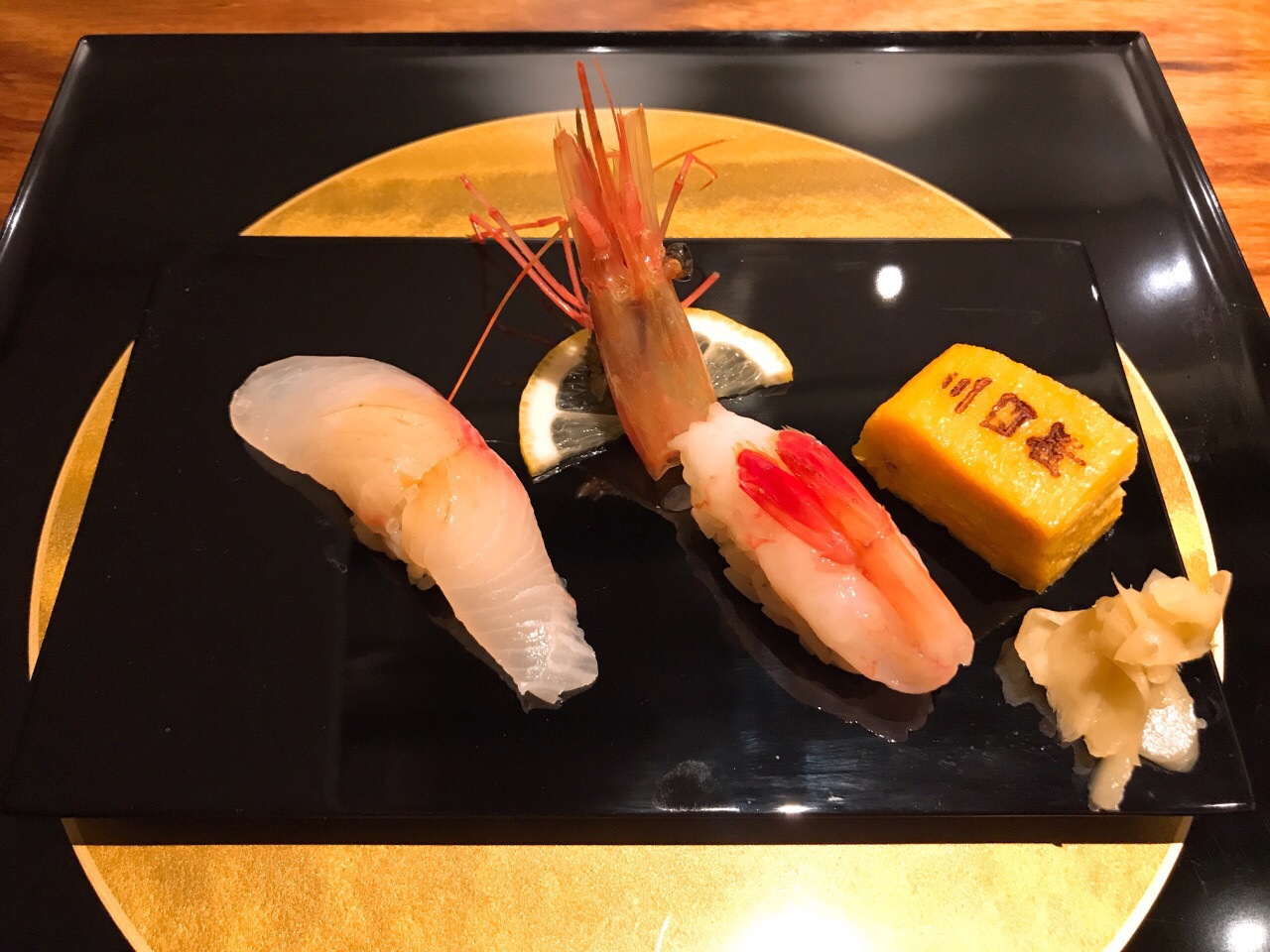 超赞,如果单点菜单有这道,绝对推荐 寿司三贯:黄鲥鱼、甜虾、玉子烧 寿司并不佳,并非寿司专门店...