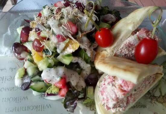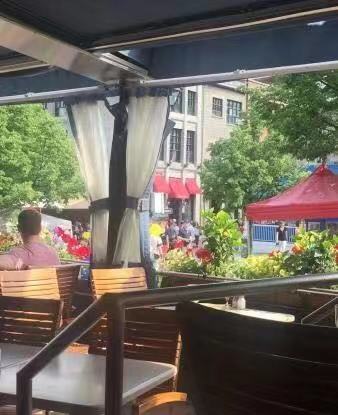 餐馆营业时间是五月到十月。露台里有把倒扣的伞,这样无论什么时候,顾客们都不会被淋湿了
