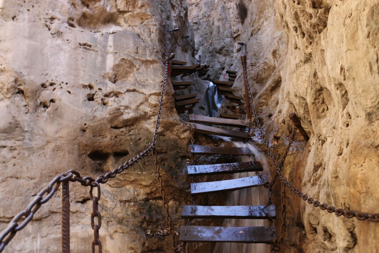 颇具挑战性的地方,体力好的朋友来一定要试试,这里上山的路很难走,依靠钉在山石上的铁条或者并不平稳的软梯子向上,一定要握紧铁链注意安全的前提下去体验攀登的乐趣,一路上有潺潺的流水相伴,众多的小瀑布不时还会让鞋子湿个透。