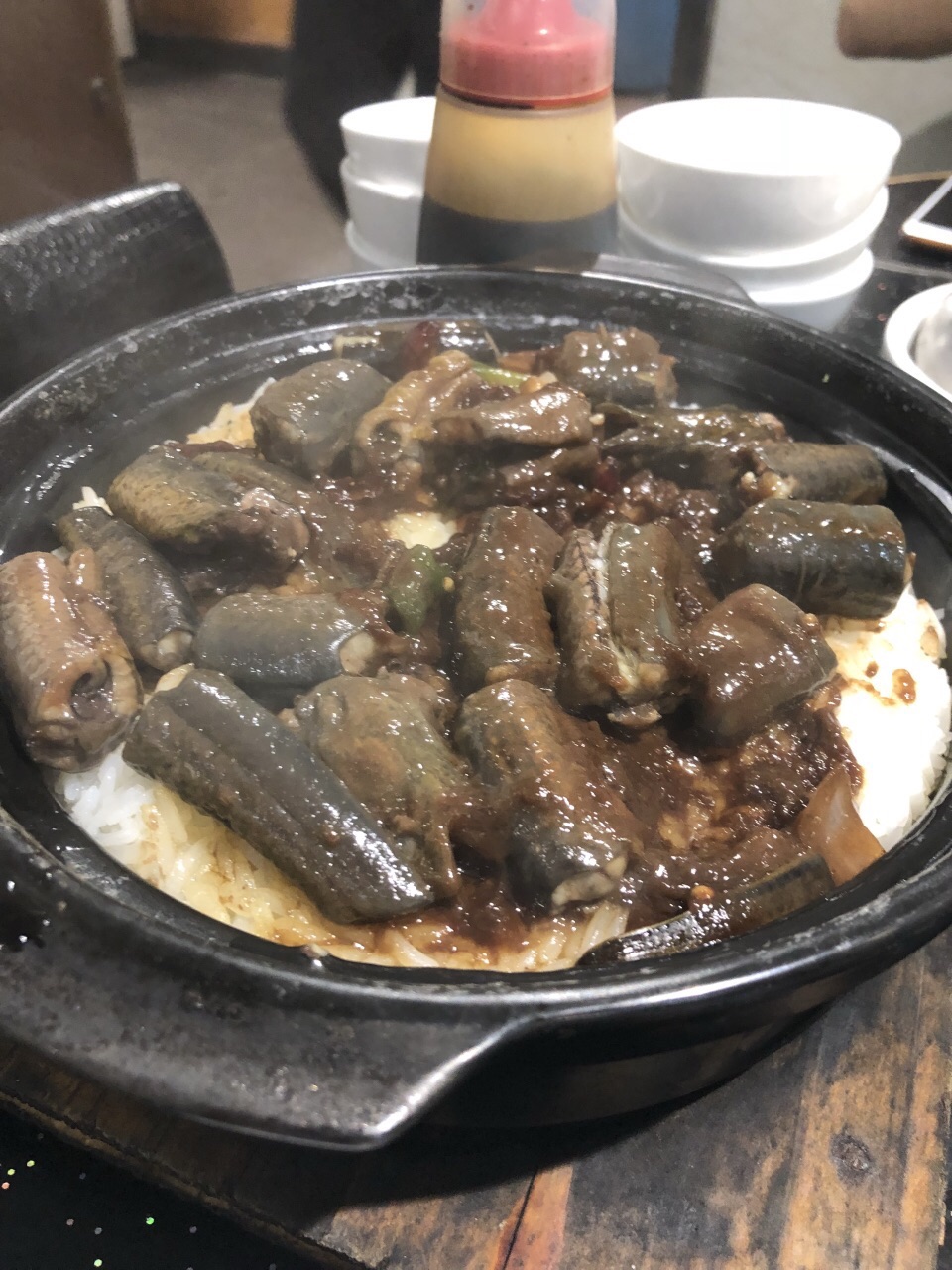 第一次吃鳝鱼煲仔饭,肉质还挺入味的,就是感觉有点儿腻。之前怎么没注意过有这样一家火锅店呢