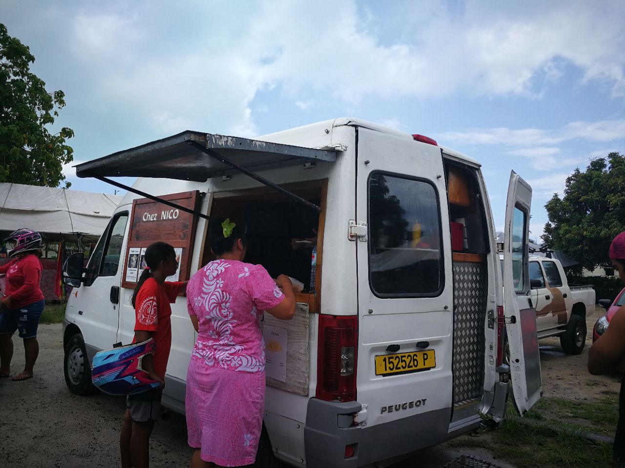住在瑞吉酒店,需要坐船到主岛去采购,每天11点酒店有船过去,船行不到五公里,然后坐车二十几分钟到达小镇,这车一路狂欢都不关门 小镇特别小,一条主路,分布着好多卖珍珠的店铺,还有加油站、超市、银行和小吃店(餐厅)。当地人在路边摆摊卖水果,都明码标价太平洋法郎,去掉两个零就是美元价格,童叟无欺。去超市买了方便面火腿肠鸡蛋面包等,主要是酒店午餐只在酒吧有简餐,受不了天天吃汉堡三明治披萨啥的