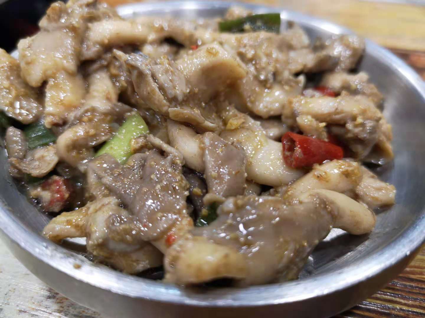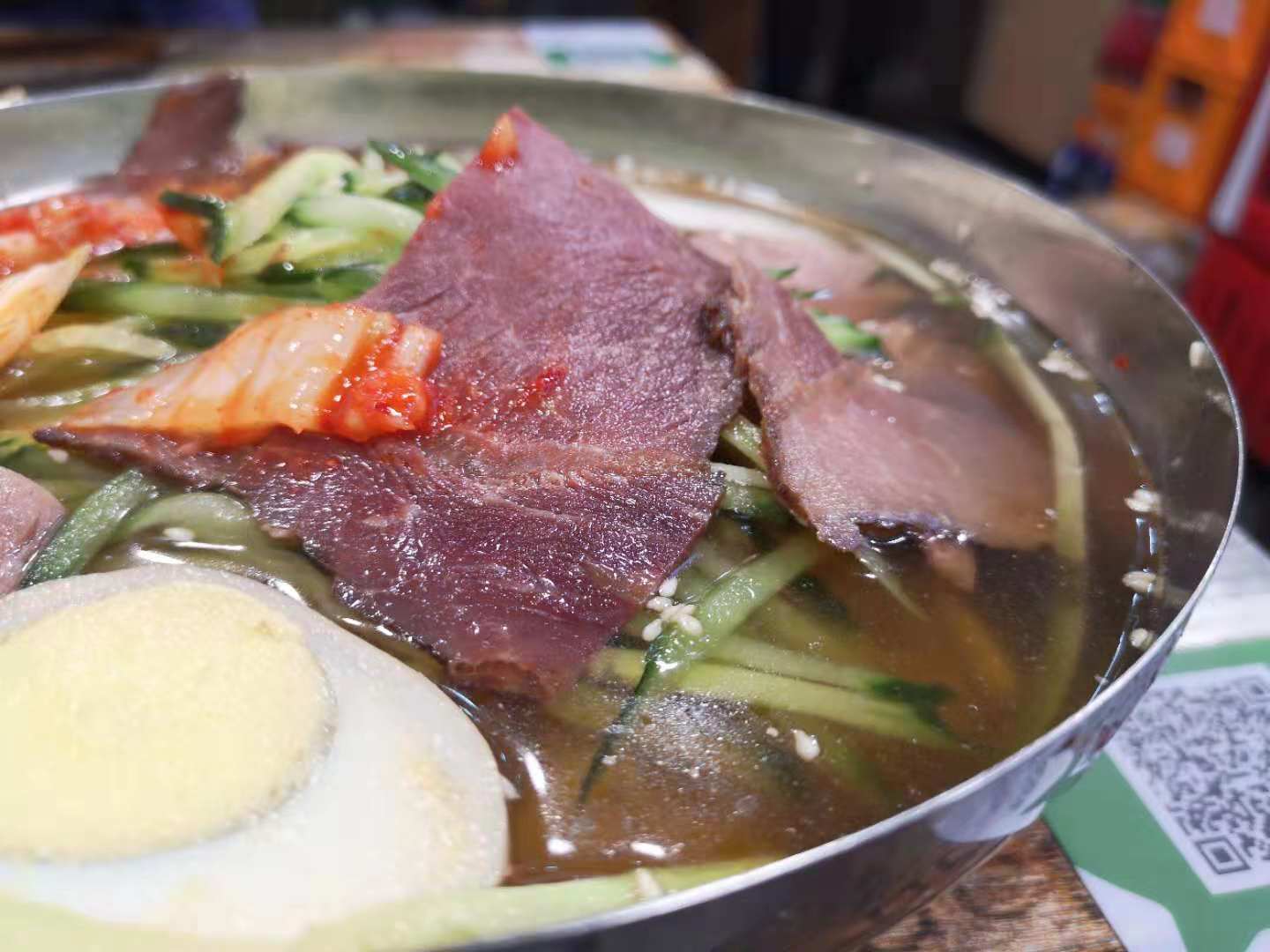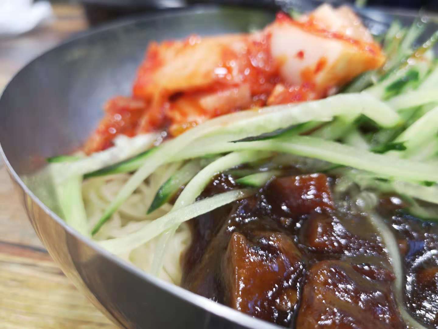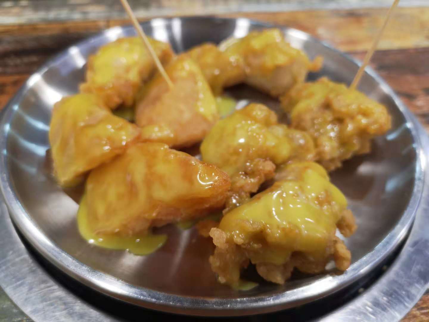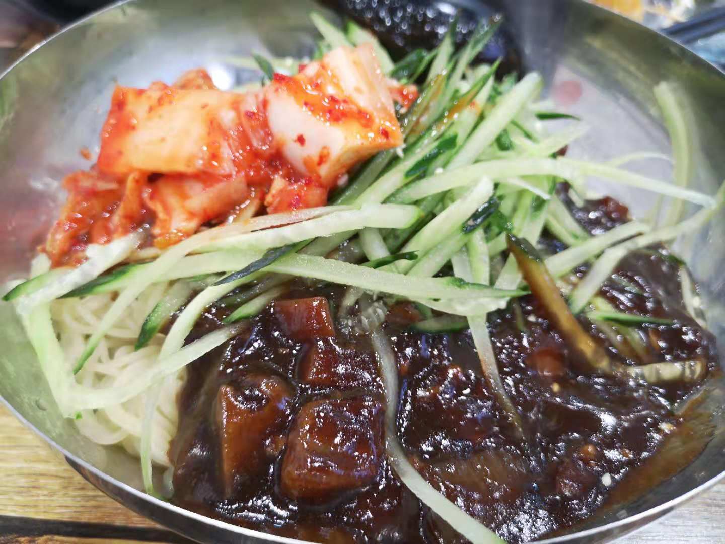 初始馨罗,是一次满心满腹搜罗冷面的时刻,一般情况下人们都理解成了冷面是在夏天吃的食物,冰镇的口感能消灭夏天闷热带来的烦躁,酸甜爽口的汤汁下腹总是能浇灭心头那一阵无名火,然鹅最早的冷面却就是发明在秋季入冬时节,我们现在正常餐饮里的冷面应该都是源自平壤冷面,馨罗的冷面就是平壤冷面。酸甜爽口的汤水,搅拌开冷水泡的面,裹上一筷子,捎上牛肉片、辣椒、鸡蛋、泡菜、梨或者其他佐料,一口下去味道齐活了,心满意足,如果有那么一刻不知道自己要吃什么的时候,就来一份冷面,酸甜开胃之余就好像打开了味觉大门,来什么都想继续吃下去。无骨鸡块这个月必须点赞,店家很用心的分成了小中大三类可以选择来点,单人就餐也可,双人就餐也可,毫无点餐份量尴尬可言。小份里面只有土豆,然鹅中大份里面是有年糕的,换而言之,为了年糕我也会奔着中大份去点一下,软糯的年糕裹着不同的酱汁口味真的是超赞,每每都是先把年糕消灭之后才调转枪头去消灭鸡块,哈哈哈哈哈哈~~~~记得曾经有部电视剧里说过这么一句真理,没有骨头的鸡块是没有灵魂的,但是吃起来舒服啊,深得我等懒癌患者深度共鸣的一句话啊。一切只要负责不停下筷子即可,大抵就是这么胖起来的,然鹅此刻我是抵制卡路里这个事儿的,这家店的所有口味都好吃,最爱蒜香酱油和蜂蜜蛋黄了,大快朵颐一顿就。至于椒盐平菇这个就不是我的爱了,冰冷的口感降低了调料的味觉感触,不是太喜欢。
