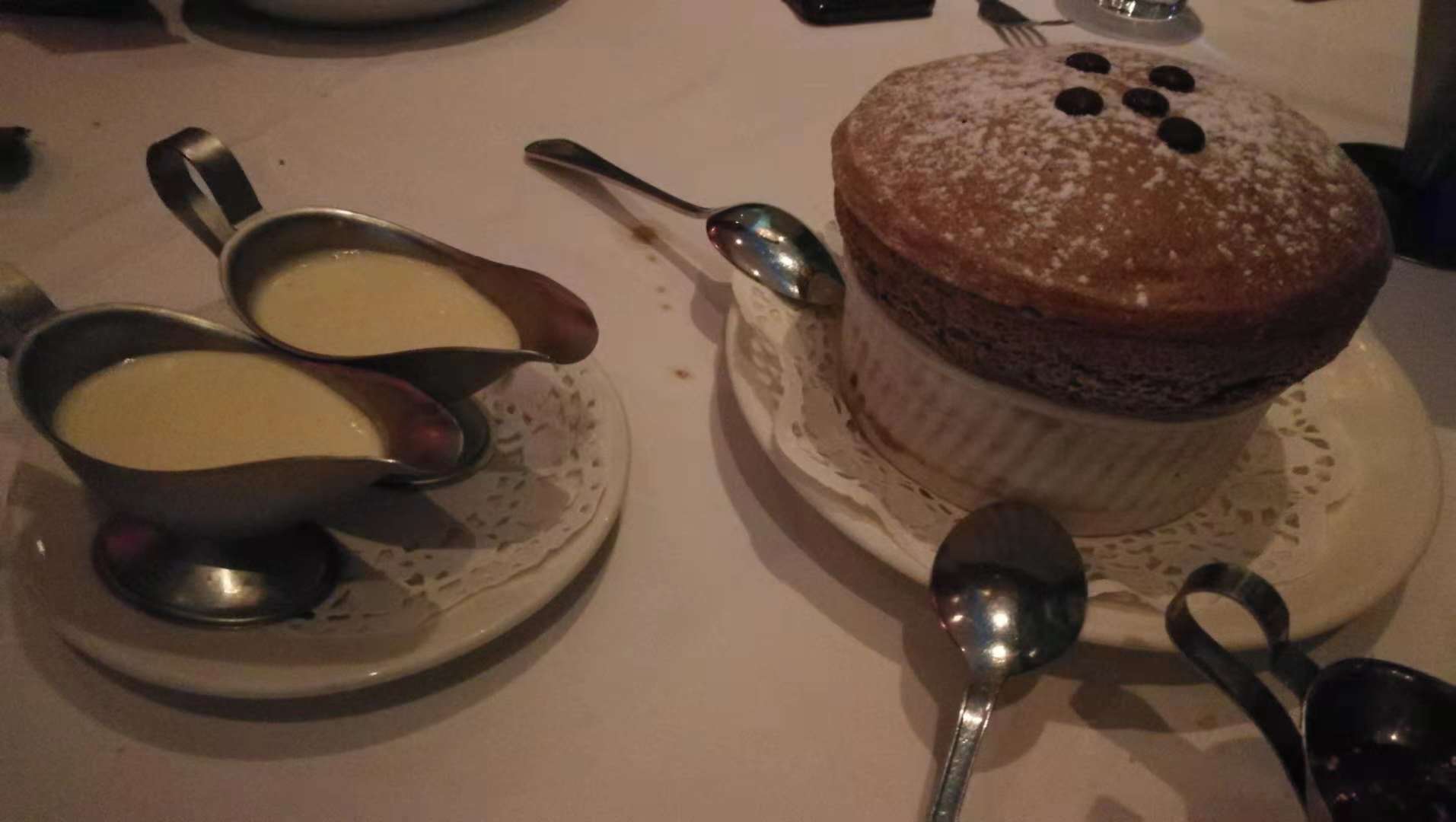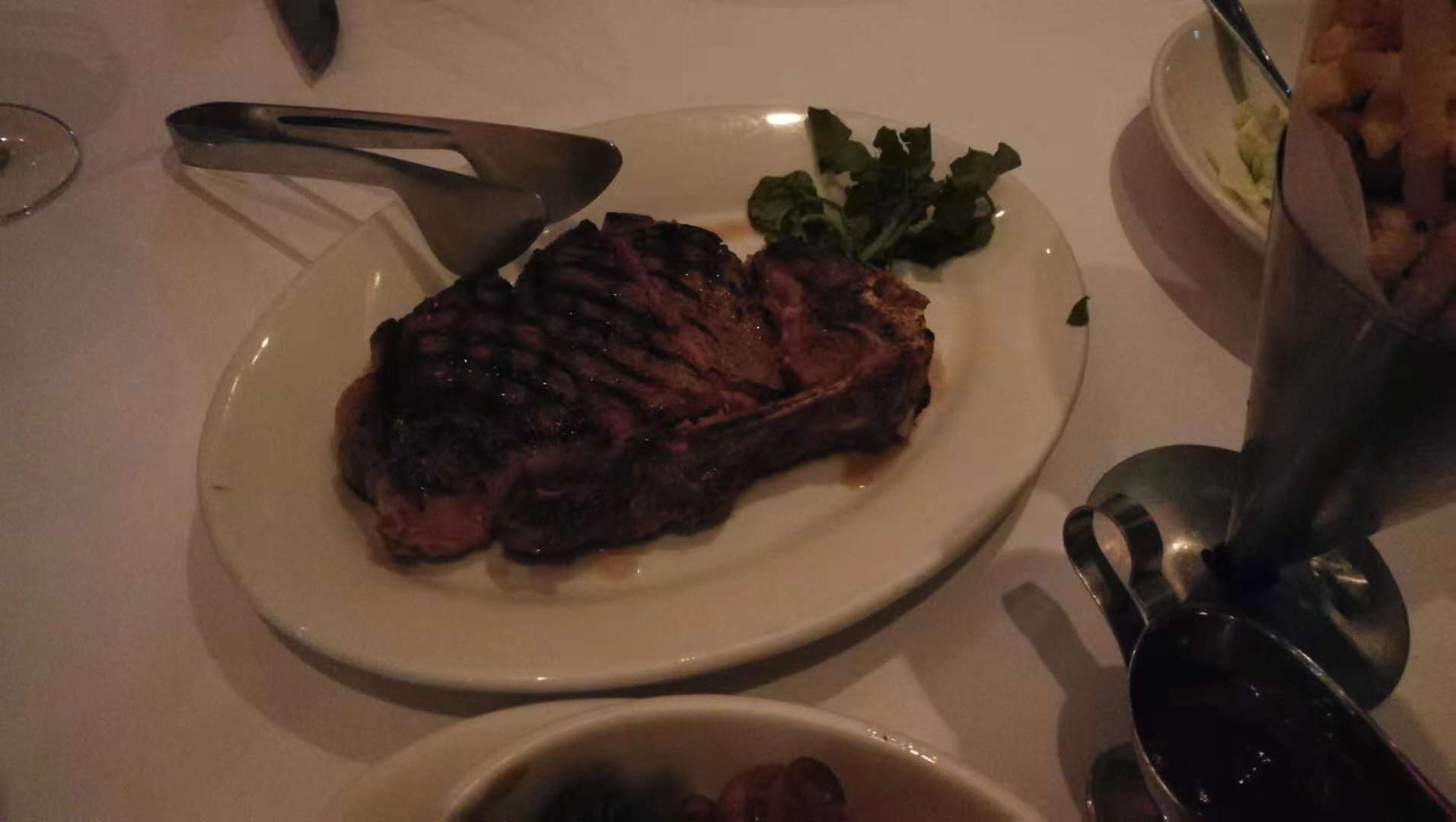 口味可以,但是环境一流,面对101大楼,最后一张照片就是在吸烟区拍的,景色真美,菜品本身也可以但是不突出,沙拉蔬菜新鲜爽脆但是不知道是否食谱是芝士份量少,薯条炸的透,脆个人嫌太细,粗薯条比较好,梳乎厘巧克力味,香气够吃不会太甜,绵绵的,芦笋一般,调味有点不习惯,牛排三分,烤的控制好,但是这里熟成假如跟美国本土比较不是同样东西,这里太湿,肉味不够浓郁,不是说东西不成但是不是要的口味,失望。下列价格为新台敝
