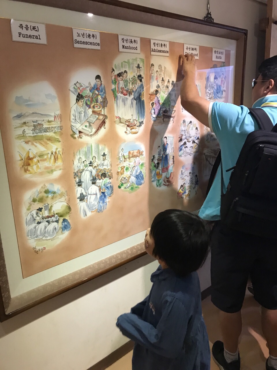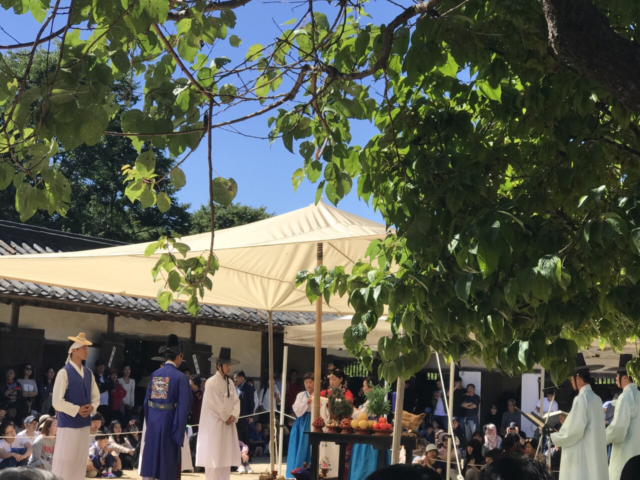 想多了解民俗、看看民俗表演的,去这里是没错的了。而且里面韩国纯正小吃也特别多。只是恰逢和中国同样举国欢庆的中秋节大假,韩国本土游客也在里面,真的是人山人海啊~走绳表演很精彩很幽默,马术表演也很韩国,很中国的表演是不同的,值得一看。至于结婚农耕一类的,孩子目前不是很爱看。但都值得看一眼的。接触不一样的感觉。但同根同源的文化,我们还是相似点太多。门口的好难过小哥哥穿着朝鲜王朝的服装,真的帅呆了