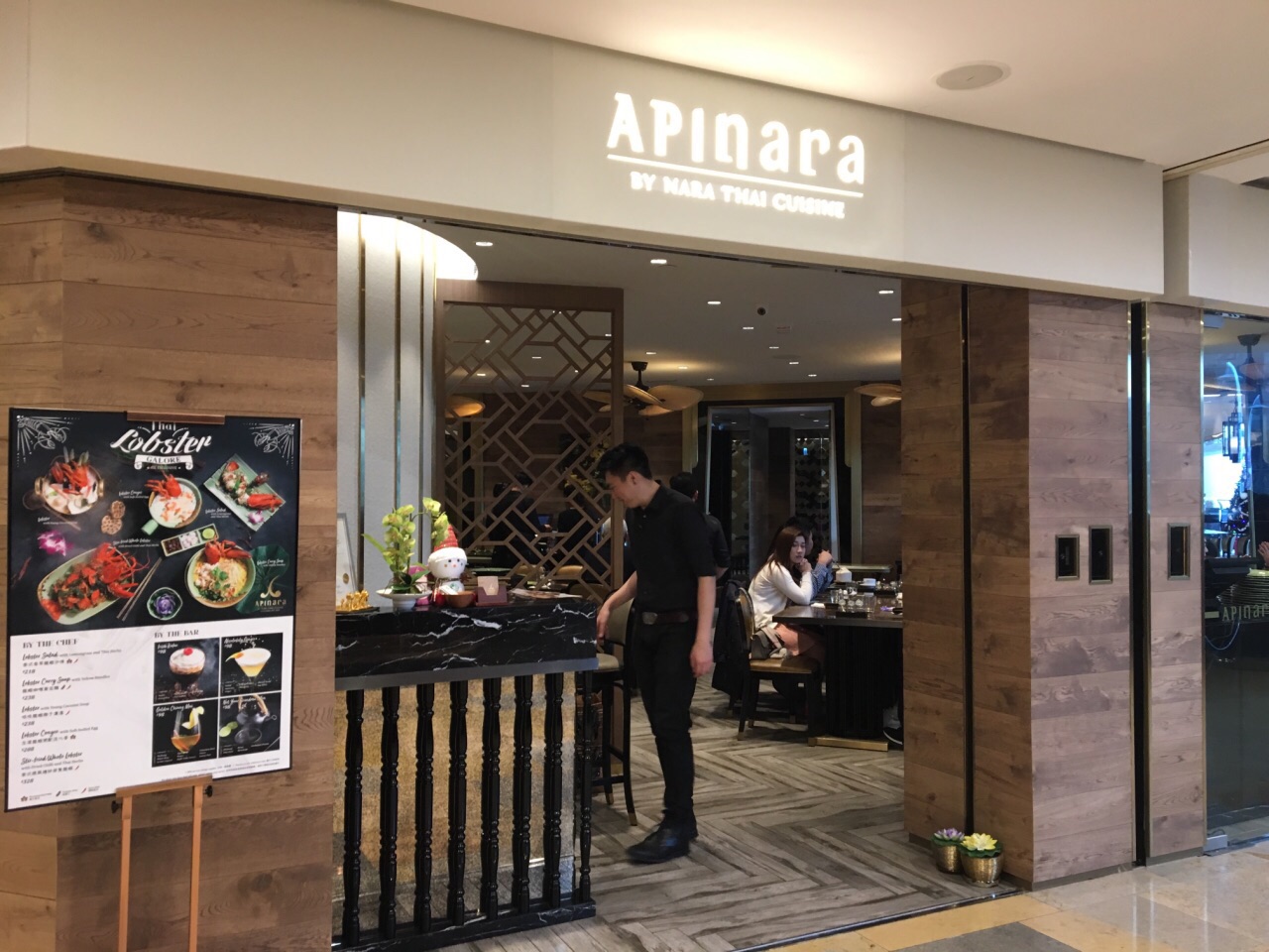 在泰国曼谷,有一家很有名的餐厅。Nara/Apinara,因为环境好,菜式有保证,比曼谷满大街的路边摊好像实在太多,Apinars是Nara的进阶版,最近在香港的太古广场也开了一家店,环境当然是没的说,带来了正宗的高品质的泰菜。当然价格是完全像香港的消费水准靠拢,可不像在泰国那么便宜,点了一份泰式避风塘炒原只龙虾,300多蚊一只,结合了香港避风塘的蒜蓉酥和泰餐里特有的辣度,这样的一只龙虾,吃起来相当的开胃。