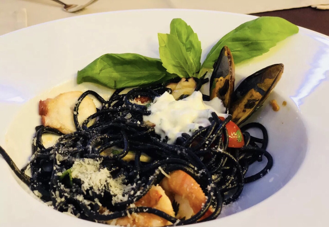 总结,海鲜很新鲜,好吃; 黑色意面,不知道是不是墨鱼汁面,口感很不错。服务不错,但是很慢很慢
