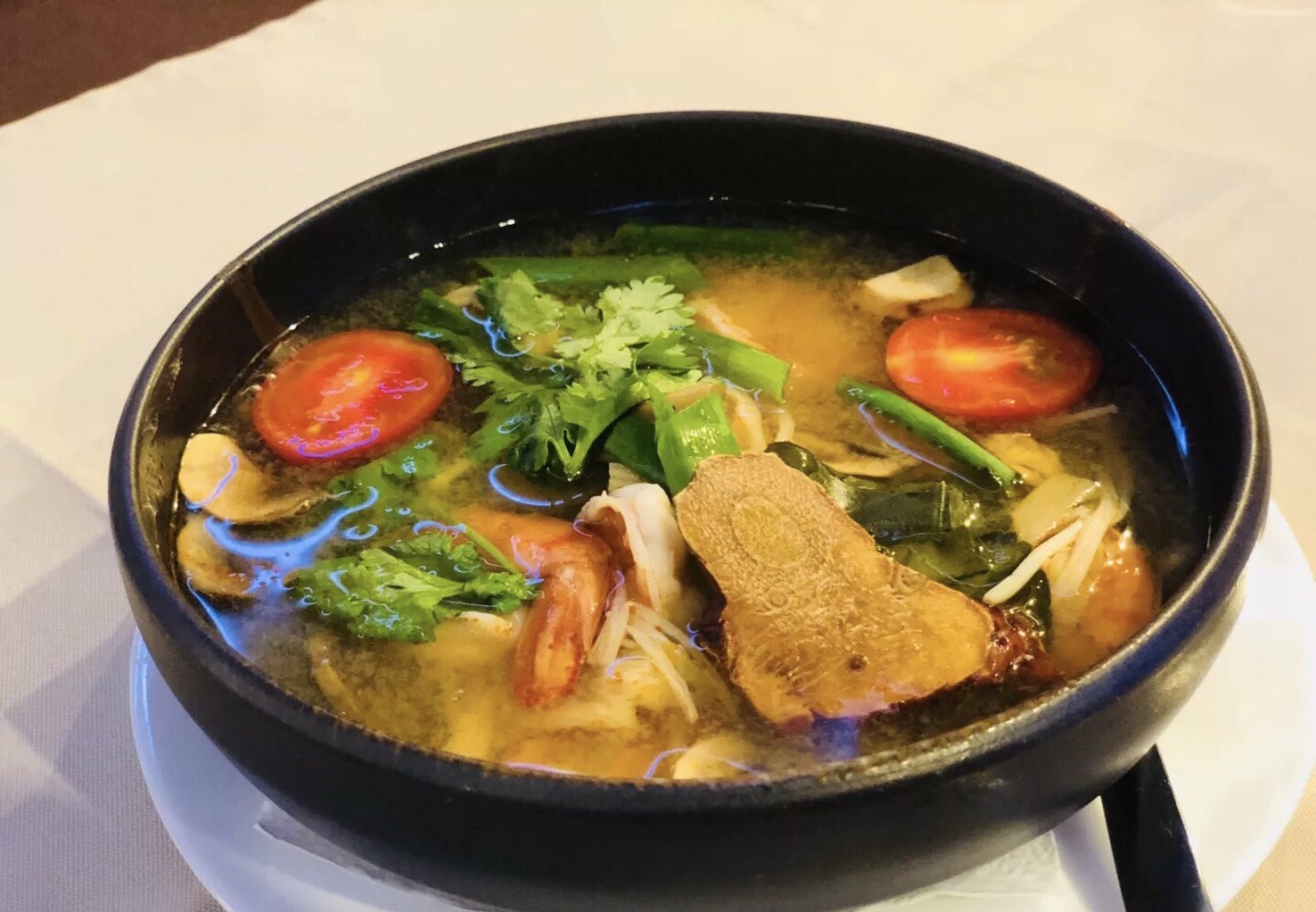 餐厅就在至高点附近,星期天中午12点进去,竟然没有 客人!直到我们两点多离开,也只看到了一桌两个男 人。 冬阴功汤,香料不是很泰式,但是味道还不错,特别胜 在海鲜料好量足,大虾就有六颗,好满足。 炒饭特别鲜,很多很多扇贝,瞬间一抢而空。 黑色意面,不知道是不是墨鱼汁面,口感很不错。 总结,海鲜很新鲜,好吃;服务不错,但是很慢很慢。