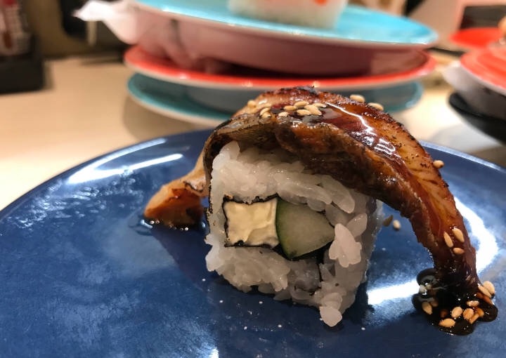 元气寿司,海胆、三文鱼子(很一般)、炸软壳蟹手卷好评,中拖罗很一般还行对得起价格,然后是像三文鱼鱼子的忘了叫什么,起司鳗鱼卷也不错,鱿鱼好评。一共是140块钱,中间吧,上菜是巨快的,我也很快就吃完,就是寿司的总类太少了,十分期待日本的回转寿司店来这里开店。