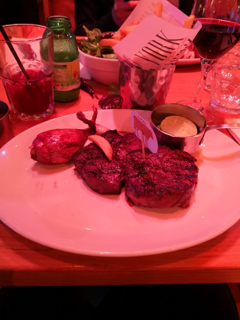 牛排确实可以,价格不菲。再配上法国红酒,很不错