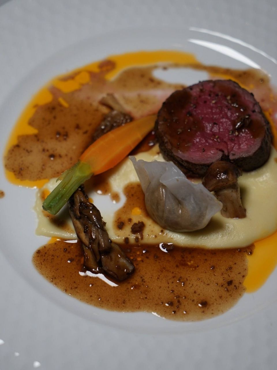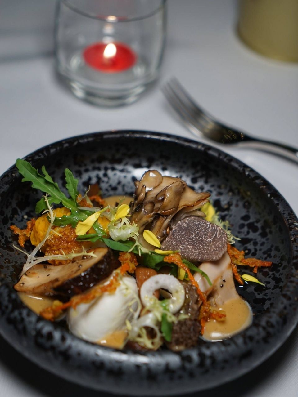 观澜湖*云菌法式感恩晚宴 碳烤云南农民采摘野生蘑菇沙拉配意大利新鲜水牛芝士松露片佐以香草油醋酱 我笑问Chef Andy,为什么要把所有食材,几乎倾囊盘点出菜单之上,他说,新鲜的食材跃然纸上,犹如跃然桌上,同样令人食指大动。所以12款菌种,包括新鲜羊肚菌 黑松露 野生鸡枞菌 竹荪 金耳 松茸 蟹味菇 白玉菇 黑鸡枞菌 舞茸菌 虫草花 口蘑,你不一定能完全吃懂,但识货的你,定能吃得出菌种的级别和鲜味,不愧是云南农民采摘的野生蘑菇,每一款都有独特的菌香;黑醋泡、辣椒和百里香泡、香烤、香煎......每一款菌菇都有不同的烹制方式,并以刀尖清洁菌菇,不用水直接浸泡,可见师傅之功力!新鲜水牛芝士增加沙拉的层次感,配以松露无敌的香味,可谓一试难忘,再试倾心! 云南野生牛肝菌泥配日本兰皇水波蛋,烤帕马臣芝士片和西班牙火腿 菌菇的香味浓烈,所以它需要一种独特的咀嚼感,配以水波蛋能令口感升华,水波蛋与温泉蛋略有不同,体现在烹制方法之中,带壳煮与否,常常能作为点睛之用;烤帕马臣芝士片和西班牙火腿,36个月的橡木猪无需言喻,隔着电脑屏幕亦能闻见浓郁的熏香! 清蒸竹荪酿虾饺配羊肚菌虫草花清汤 木有一点盐分,喝起来非常清新,类似法国牛清汤的做法,却以蘑菇来烹制,令汤色清丽,清淡怡人。食材虽不算特别矜贵,但却配搭得层次分明。 48小时低温慢煮云南高脚鸡卷配绍兴酒烩蘑菇和香脆鸡皮 Chef Andy的师傅,是米其林的厨师,所以他对食材的理解,也与平常厨师截然不同。我笑问,何以法式餐单之上会有“绍兴酒”这么中式的元素。Chef Andy说,菌菇有些许腥味,以陈年绍兴黄酒烹煮,不仅祛除了腥味,更令口感层次丰富;正如马德拉白葡萄酒特别配法式菌菇,但在中国却很难买到,改用中式的菌菇佐以中国风味浓郁的酒,则相得益彰。 芭蕉叶盐焗牛柳配野生菇泥和牛肝菌燕黑鸡枞菌饺佐以法式鹅肝汁 广东盛产芭蕉叶,其清新的香味,且能吸收多余油分,被Chef Andy看中,因而用于饕餮法餐之中;牛肝菌燕黑鸡枞菌饺则是不可多见的饺子,口感非常独特,符合菌菇这一主题,很是出彩。