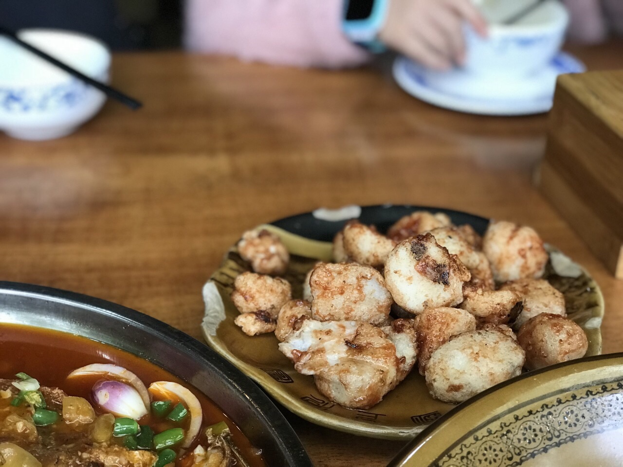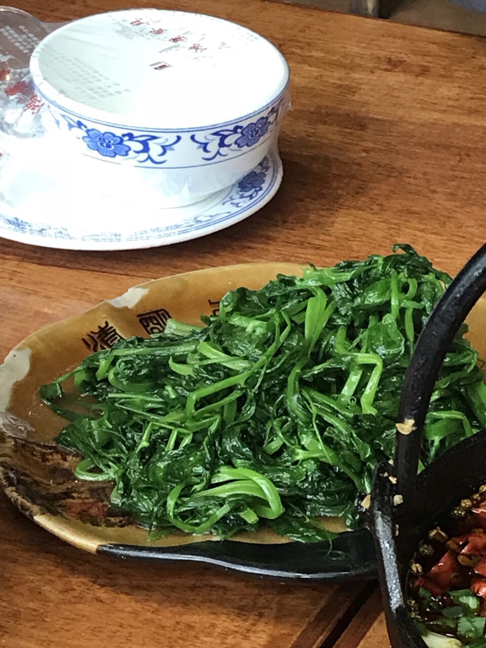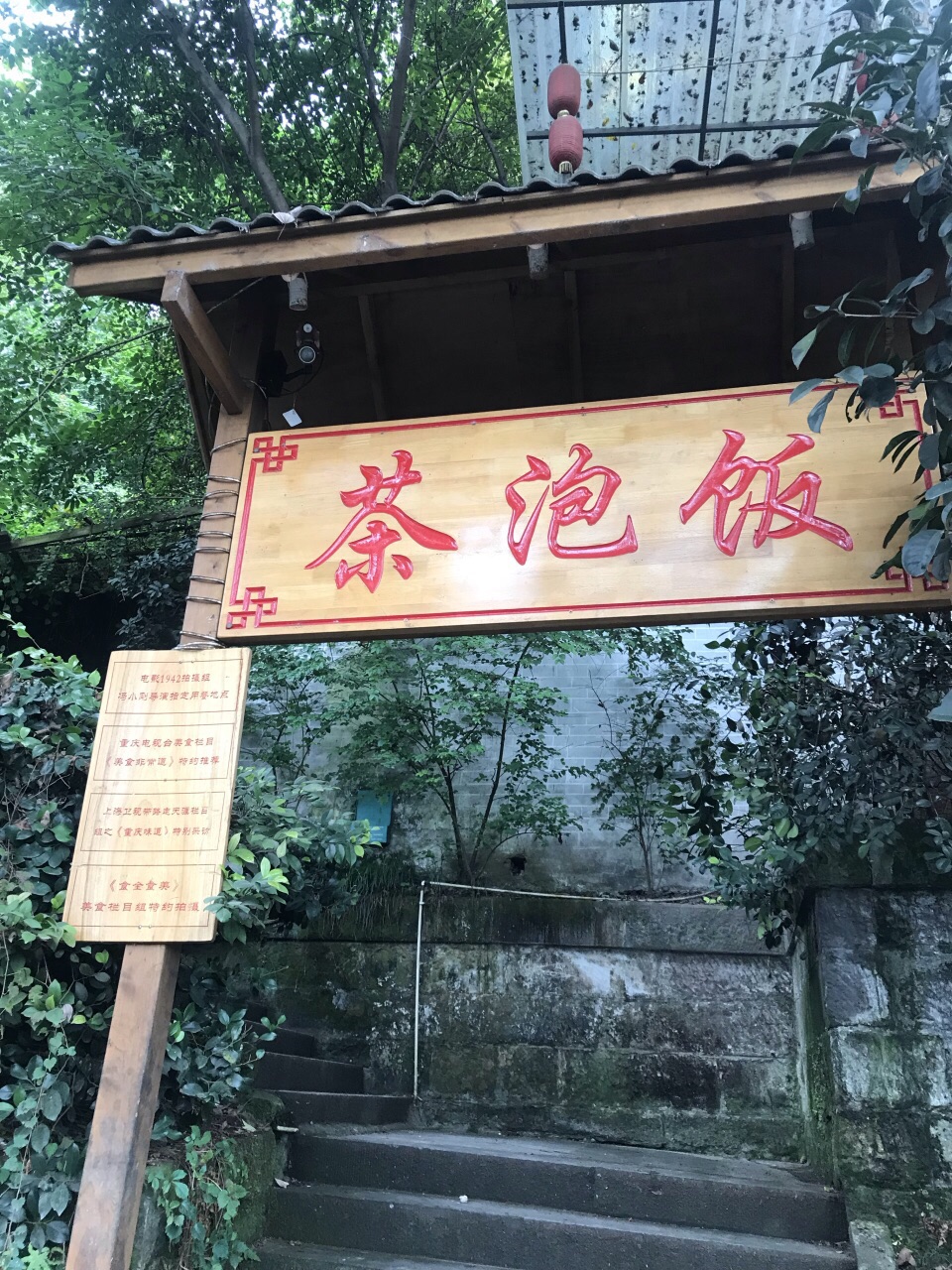 渝中區有一條蜿蜒曲折山路十八彎密布著蒼蠅網紅館子的公路, 也是一條長期被人叫錯名字的路。 平翹舌、前後鼻音不分的重慶人口中的「山城公路」, 其實叫作「三層公路」, 連接著渝中區的上下街區。 一部「從你的全世界路過」的電影, 讓這片坐擁丘陵地勢一線江景, 卻又低調做人的區域, 瞬間成為網紅地, 引來無數粉絲圍觀打卡。 某個週末的上午, 和太太出門散步。 走過新修的嘉濱路健康步道, 我突然想起了朋友推薦過的茶泡飯, 一查高德, 步行不過半個小時。 於是打電話邀約那位朋友, 正好他們一家也有空, 就這樣臨時起意, 撞日成行。 沿著濱江路前行, 順著盤山路向上, 茶泡飯就坐落在輕軌2號線佛圖關站附近。 沿石階而上, 店招很容易見到, 二樓的大廳雖然私密性不好, 但相比三樓狹窄的包房, 空氣和視野反而更好, 半戶外的環境也天然, 我就在凳子上觀察了一會兒天然的毛毛蟲。 按照網友推薦菜, 點了鯽魚、腰花、芋頭、蒜泥白肉, 怎麼說呢, 還算是不錯的江湖菜, 但特色似乎少了點兒。 尊為店名的茶泡飯, 真的也就是茶水煮的米飯。 只是重慶的江湖兒女特別喜歡這種江湖風格的館子, 心情好, 吃得便愉快。 飯後走路去百麗宮繼續請朋友們一家看了《毒液》, 愉快的一天。