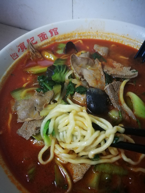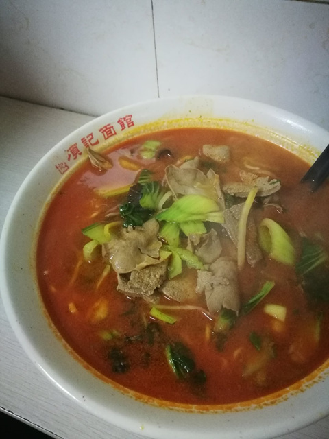 【位置】 明瓦廊和丰富路之间的陆家巷小区里,对面就是网红的鸡蛋灌饼,岀了名难找车位的地方,想锻炼一下车技和耐心的可以开车来。 【环境】 门脸很小,门口可以坐几桌,里面店堂是个狭长条,比较拥挤,好在不黑暗油腻,还算整洁。 【服务】 进店堂走到底,点单结帐,给个写着号码的小白条,找座位坐下,阿姨会给端到座位上来。 过了饭点,生意依然火爆,阿姨忙不过来,桌上的残羹剩饭来不及收。 【食物】 腰花猪肝面,19元,腰花、猪肝都爽嫩不腥,口感正好,面条是手擀面,久泡不软烂,汤头是荤汤,口味不错不膩,要的中辣,看起来红彤彤一片,其实是香而不辣,蛮好吃的。 【评价】 心仪了很久的南京小煮面馆,因为明瓦廊好吃的太多,一直没有去拨草,吃过确实口味还不错,他家的面不是默认自带皮肚的,下次要去尝试一下他家的皮肚面。