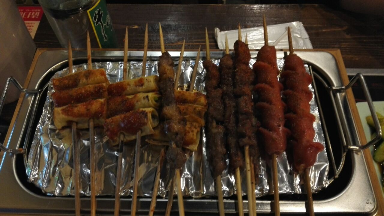 [环境]地铁E口出,往南直行不到一公里,路西即是。门脸挺明显的,而且沿街都是各类小店。店内面积不大,听说有二层天台,但是深秋了就不会上去了。不过顾客也不是很多,所以倒不拥挤。 [服务]服务很热情,上菜很快,还会主动提示肉串可以放到加热炉上保温。这个加热炉还真是巧思,可以保持肉串始终保持热度,也不会太焦,第一次见,大赞! |黑椒烤牛肉串^这个串确实是招牌,肉是腌制过的,很入味,串比较大,烤的火候也刚刚好,虽然都是瘦肉,但并不会感觉柴。 |烤鸡脆骨^鸡肉很嫩,并不是买的那种现成的串烤的,因为用的是店家自己的铁签子。脆脆的,推荐! |羊肉筋(5串)^肉串中规中矩吧,肥瘦相间,火候比较好。只是肉块较小,口感不够丰满。 |白牛二^酒是惊喜,居然是正宗顺义酒厂出品的,口感很好,不知不觉就喝了很多。 总体来说性价比较高,等夏天有机会再来品尝。
