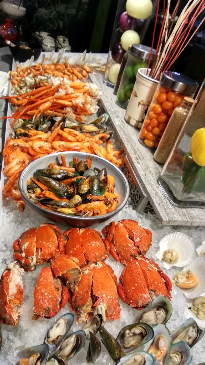 前段时间餐厅在推出的新加坡辣椒后,昨天酒店里还举行了圣诞点灯仪式非常热闹,而且又全新推出了海鲜自助餐,菜品丰富多彩,有龙虾泡饭,现开生蚝,烤阿根廷红虾,还有各类新鲜的鱼虾蟹贝壳类的现做明档,可以选择各种烧法,还有圣诞火鸡,战斧牛排,琳琅满目的食品,我都不知道从何下手啦!