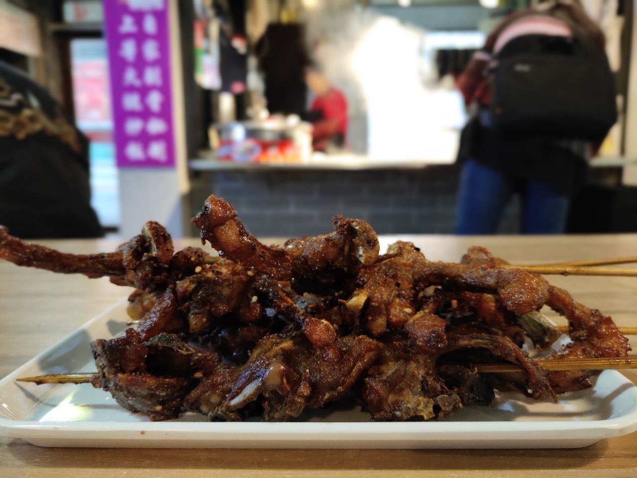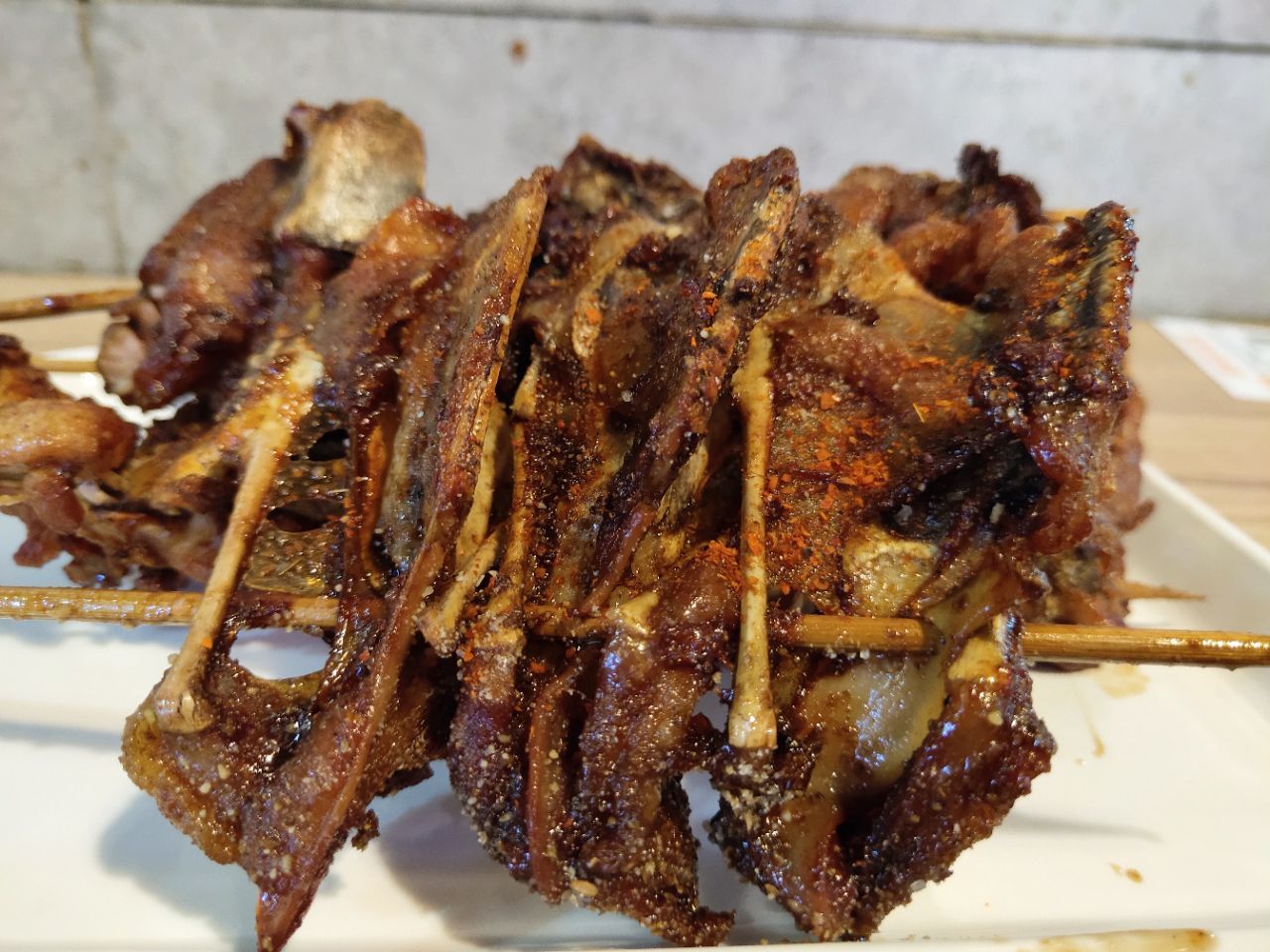 [机智]发现好吃的QQ鸡架[拔草] ⭐正通美食城里面的一家档口 ⭐比起旁边几家这里是非常干净了 ⭐鸡叉骨和鸡架都串成利索的一串,没有多余的血水碎肉 ⭐鸡叉骨一串4个5元钱,鸡架三块2.5元 ⭐炸熟后的宝贝们散发着焦糖的香味 ⭐肉肉熟透边角有点焦酥,最爱这焦酥微甜的口感,一点点撕下来吃,跟吃鸡腿完全不一样的幸福感[爱心][爱心][爱心] [机智]拿2个鸡腿跟我换我都不换[亲亲]