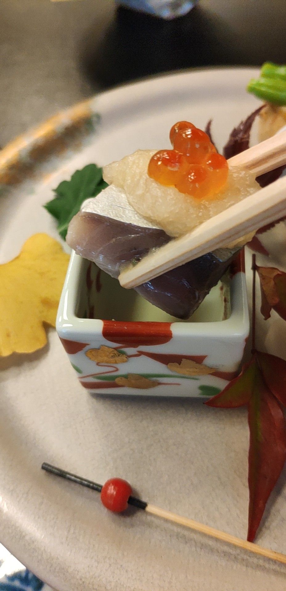 是日式榻榻米,盘腿坐,也可以要个小凳子,前菜也好好吃,这次一人自由行最满意的一餐。结账出来给的纪念品