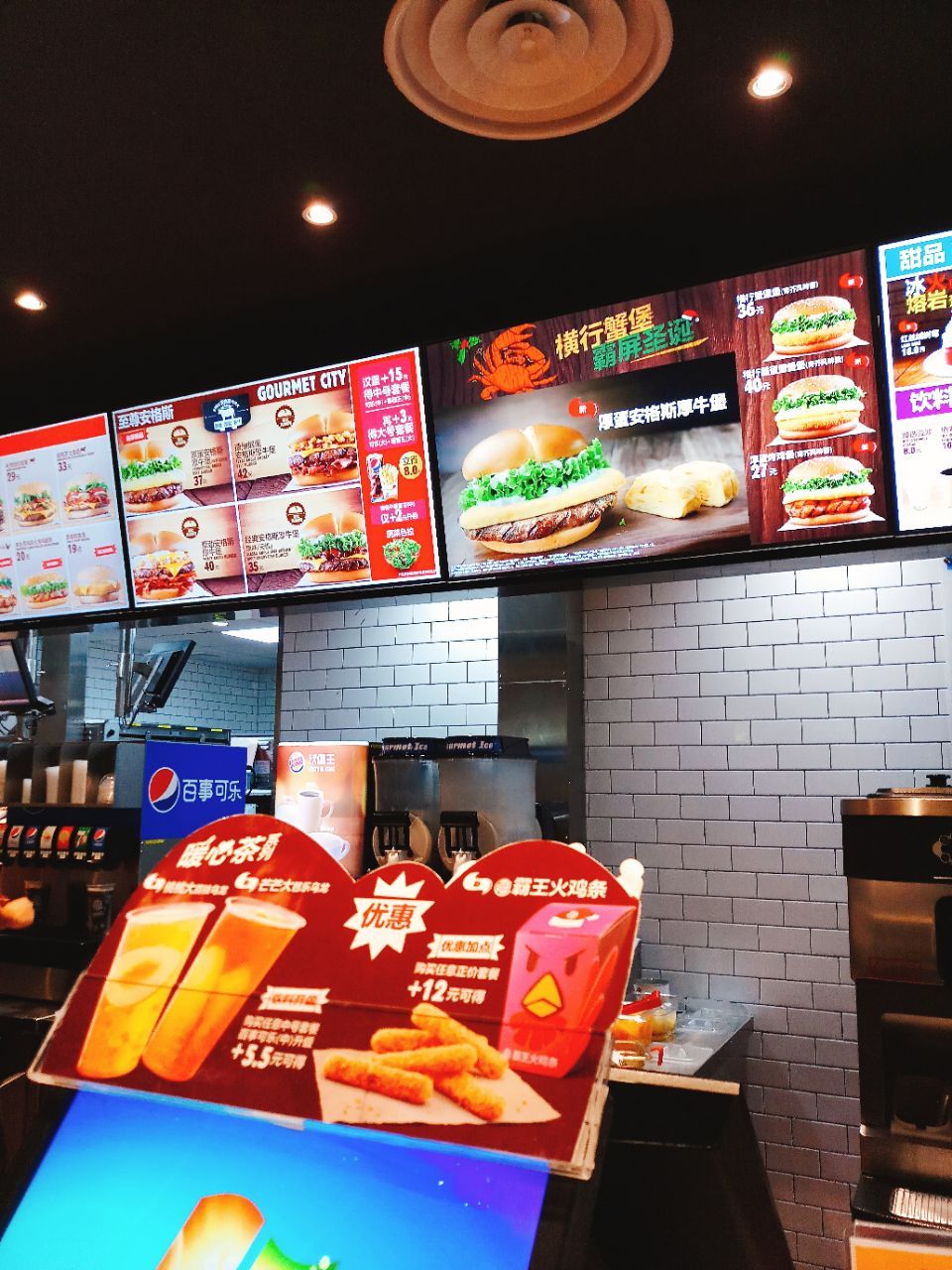 ...王 排队真是人山人海 如果买小吃就很快 买汉堡那你有的等了 店内堂吃的人倒是不多的 基本都外带
