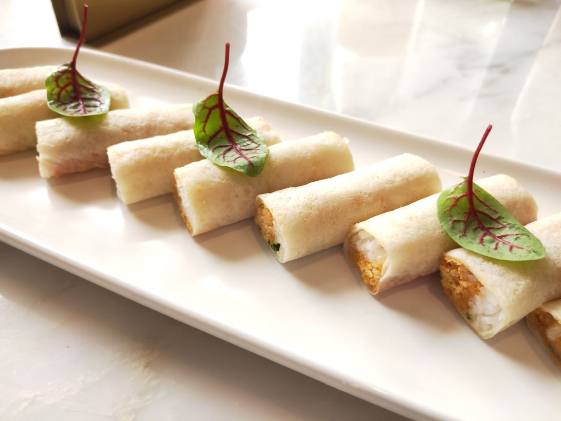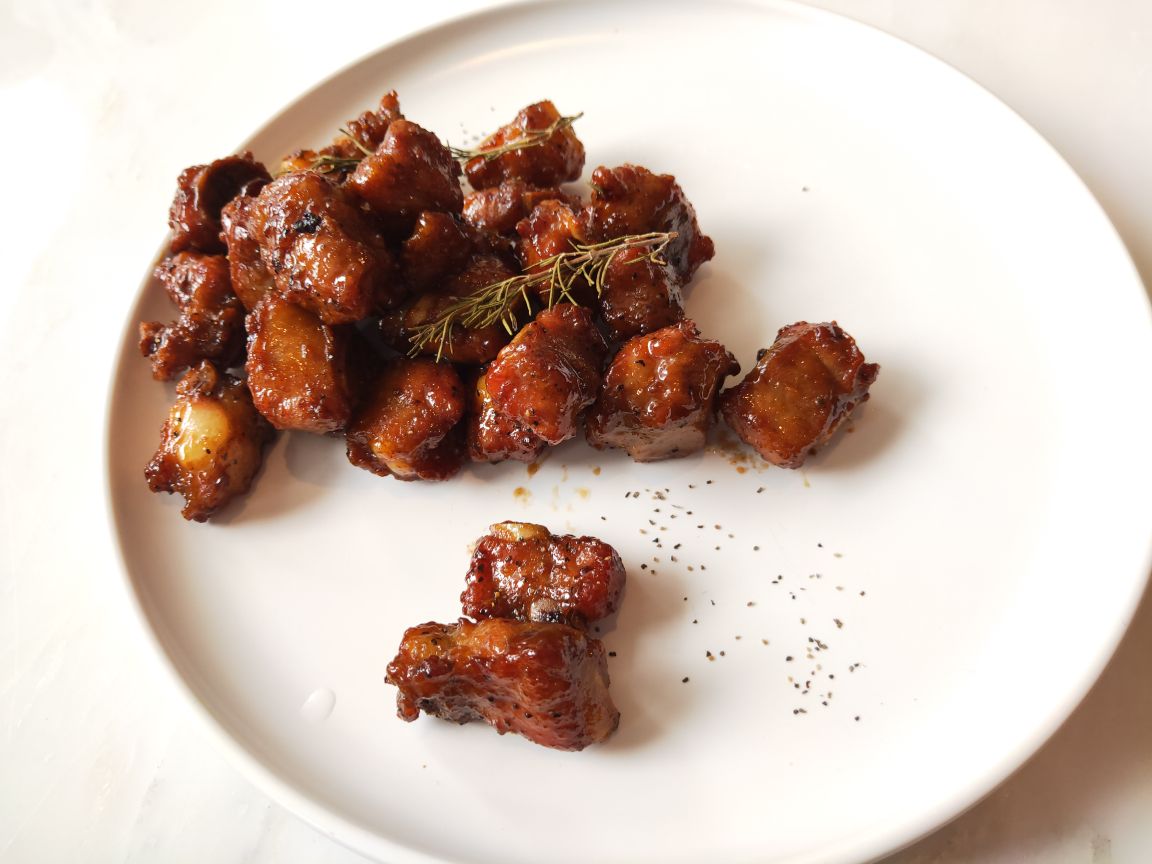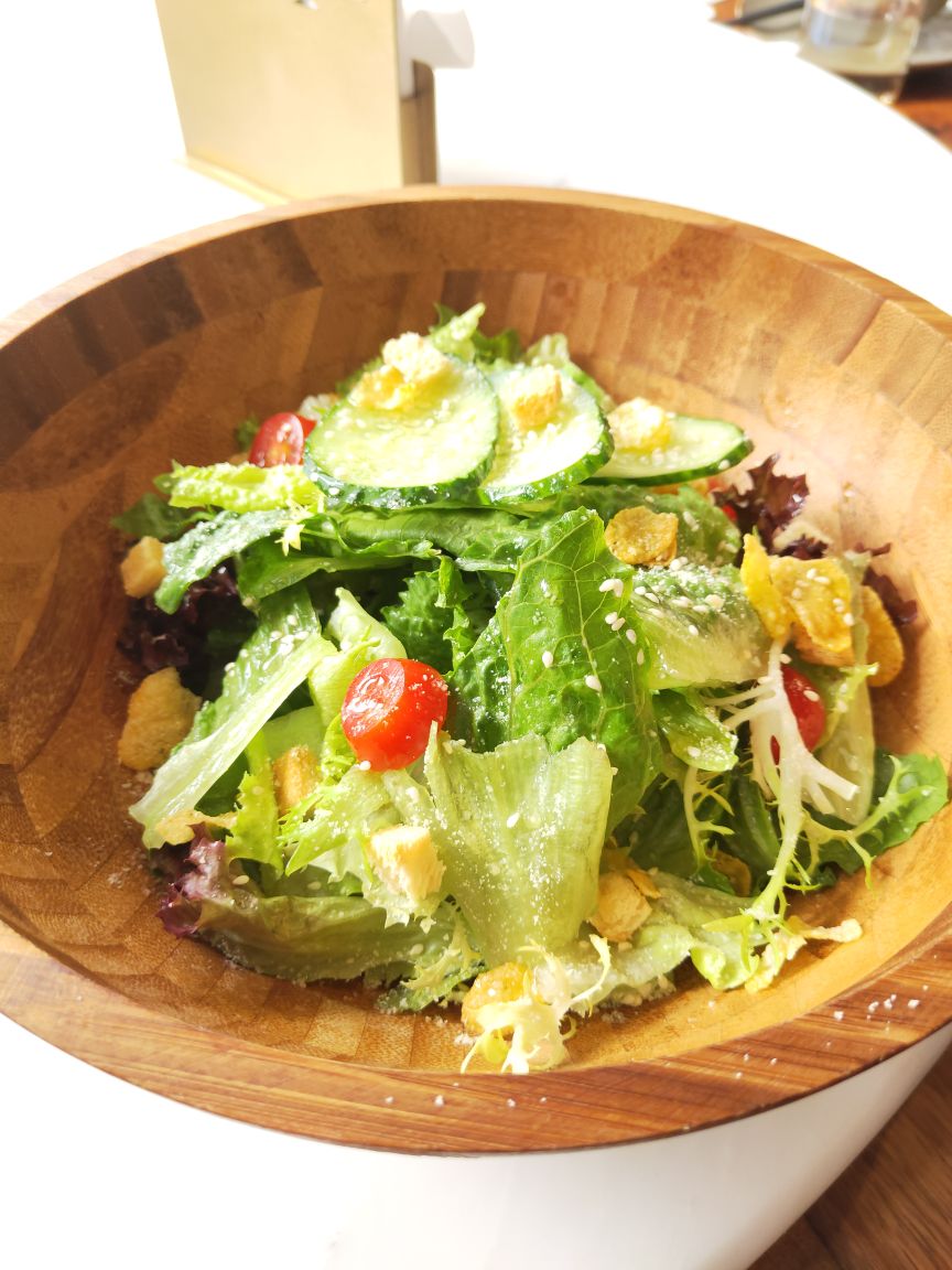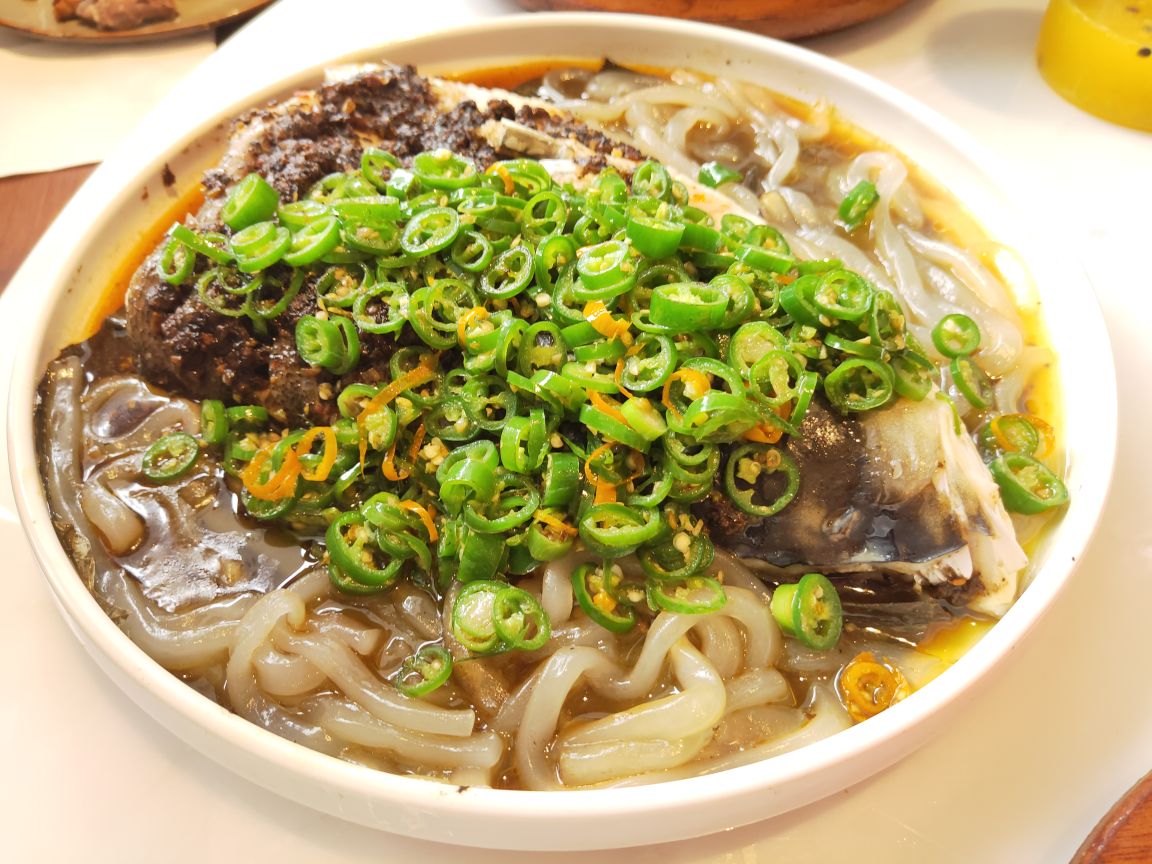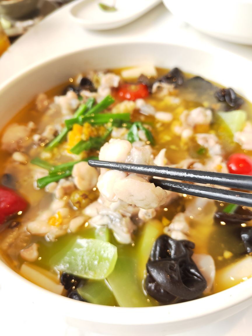宝龙一城不念在4楼天台一处,位置明显优势,环境宽敞明亮,装修简洁明快!最有特色的是一角落半面石头墙,刚开始感觉是现代农家乐,后来与店里的整体效果结合感觉又有欧式风格,也算是特色之一吧。不念的菜品比较有创意,将许多闽南菜进行优化改良,最传统的厦门糖葱卷点击率很高,醋酸萝卜和甜甜的贡糖引发儿时的回忆。醋肉三拼有醋肉、炸豆腐和糍耙三样小吃,颜值以及口感都很好。芋头煲吃起来有点小惊喜,芋头非常棉柔,入口即化,不带点粗纤维,与香菇、虾仁干、蒜头一起煲得很香。个人非常喜欢黑椒排骨,排骨做的黑黝黝,法式摆盘,每块排骨刚好一口一个很好入口,易脱骨,嚼起来有黑胡椒的香味。汤品是竹荪绣球菌炖水鸭,单看菜名就知道汤的原料都是比较清爽养身的,果然好汤受欢迎,大家都喜欢喝这种鲜美营养的好滋味。饭后甜品是酒酿南瓜丸子,整个南瓜挖掉籽后加米酒和黑芝麻汤圆去炖,南瓜本身微甜,加上黑芝麻汤圆的甜很协和的甜汤,竟然不会觉得太甜或太腻,吃甜汤的时候还可以挖南瓜的墙角,把南瓜肉也吃了,分量足足的。