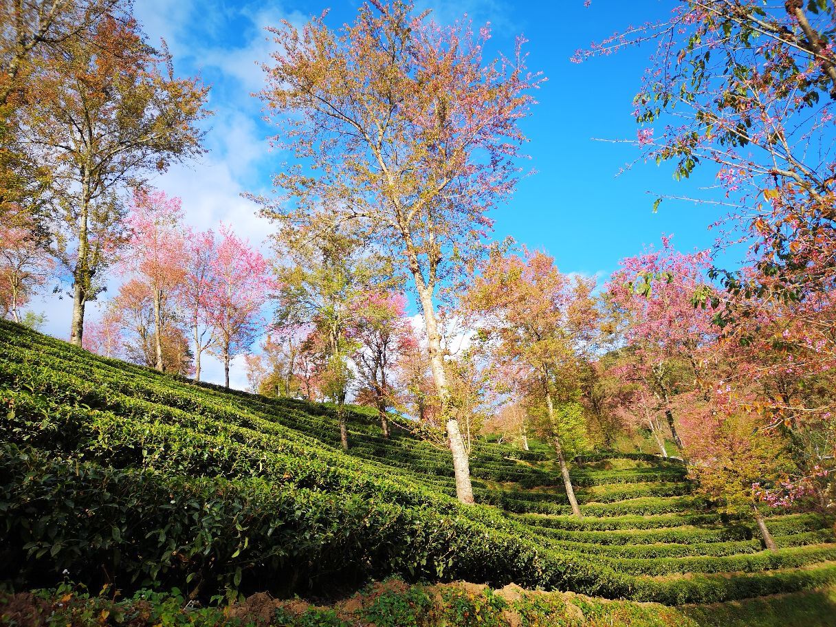 网友2018-12-0312月1日早晨7.40,在樱花谷一号观景台观赏冬樱花,美就一个字12月1日早晨7.40,在樱花谷一号观景台观赏冬樱花,美就一个字。再沿步道用20分钟走到二号景区,就是在一号观景台看到的那面茶树坡,抵近观赏樱花。可以在无量山樱花谷入口附近,二号景区附近,或公路边的客栈住宿。