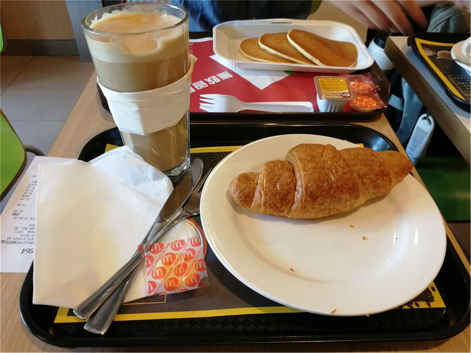 位于最基层平民居住的屋邨之内,也许消费力不足,麦咖啡柜台的出品反而不新鲜。早餐品种很丰富,大陆餐厅无法可比,且相对当地物价套餐好便宜而且份量足,口味佳。门口有免费饮用水及一次性水杯提供,见很多公公婆婆就坐在位子上光喝水,店员也不会驱离,人情味颇浓。