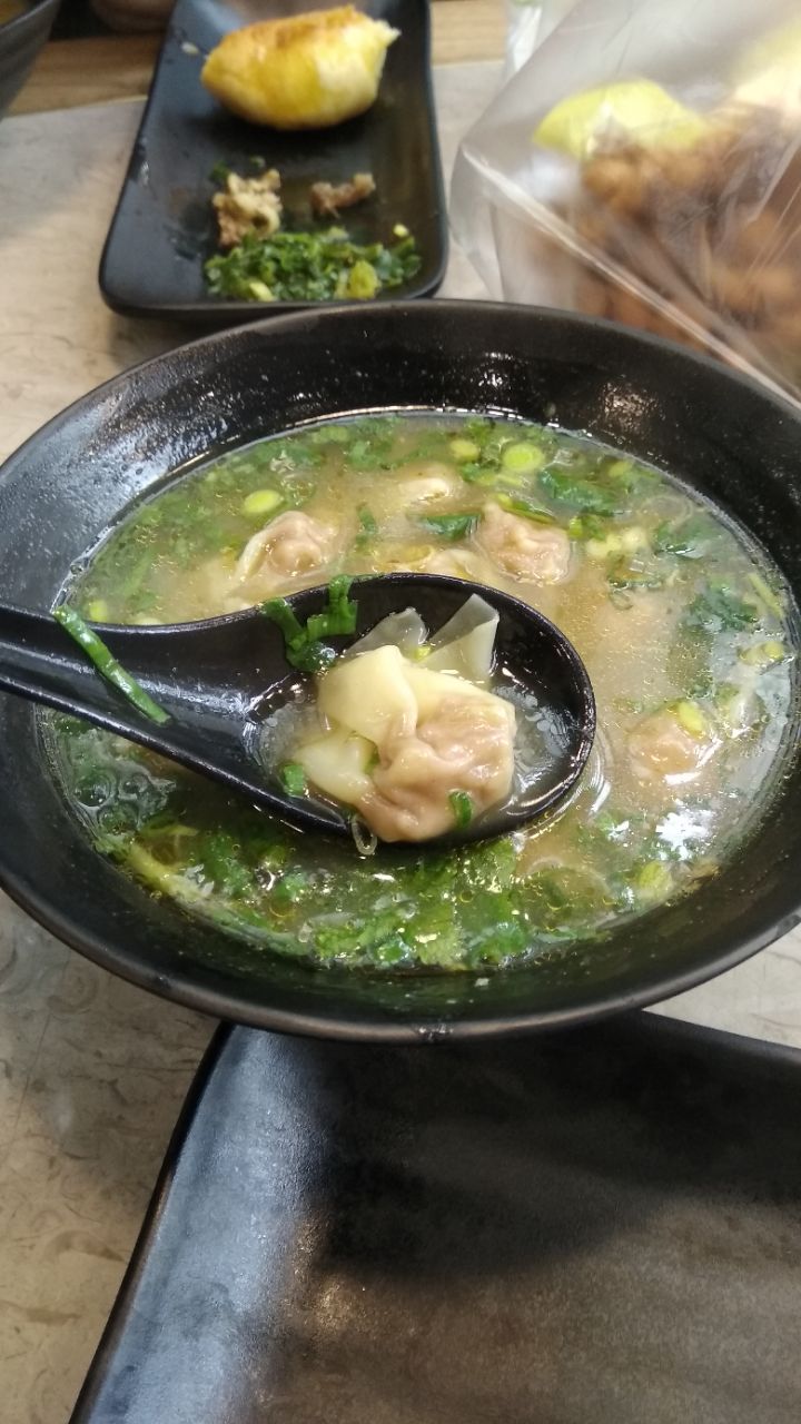 在人气美食看到这里的牛肉煎包很好吃,昨天就和老公去拔草了。中午一楼店堂里客满,我们和别人拼台的,还有等位的客人,我们点了羊肉烧麦,牛肉锅贴,牛肉小馄饨和牛肉煎包。烧麦一口咬下去满满的羊肉和香味,牛肉锅贴无功无过,牛肉煎包确实名副其实的好吃。他们家二楼还有吃火锅的下次来试试。