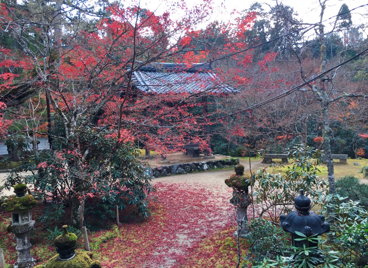 西明寺位于京都高雄,从四条河原町坐公交车过去要一个半小时。如果去神护寺的话,要先经过西明寺。 寺庙的门票是500日元,里面不大,10分钟就能走完一圈。我们是11月底去的,红叶已经掉了一半了,见倾的时候去,应该还行。