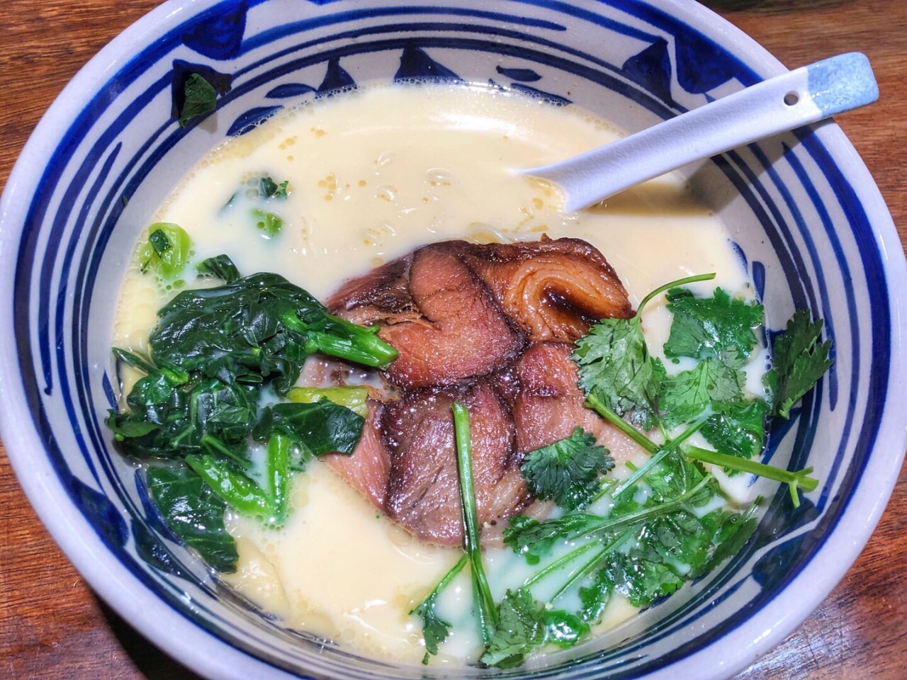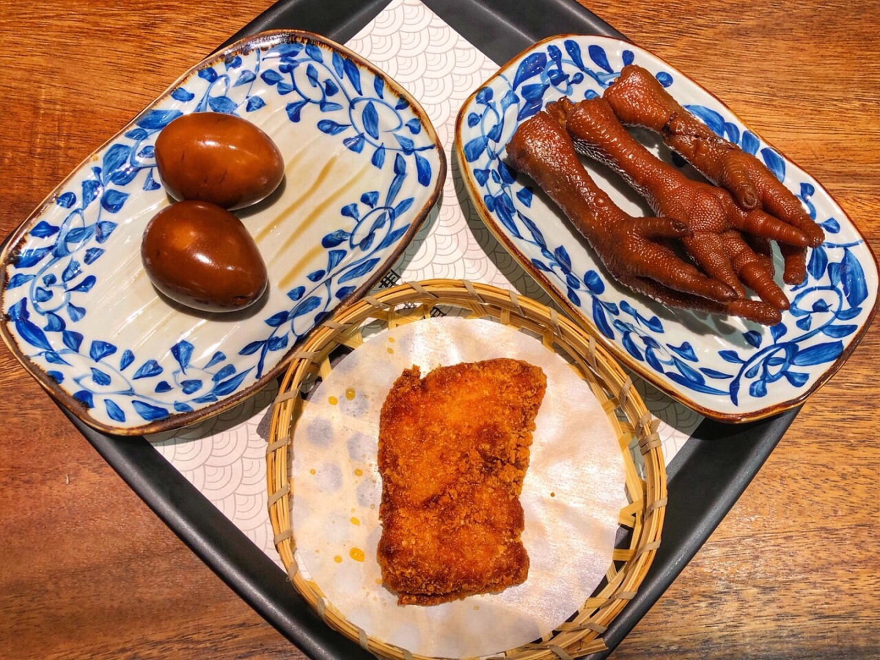 开了那么久 头一回吃呢 2012年成立至今 发展迅猛 连锁遍地 是一家“养身、养心”的慢餐饮 打造“书房里”捞面模式 自选模式 喜欢什么拿好后去收银台结账 特别注意到 有提供一次性手套 很讲究呢 买单后会有一块候餐牌给你 将其插入桌面上的卡槽 服务员会把美食送上来哦 「草本汤猪软骨面」¥37 面碗极大极深 两块猪软骨在内 肉质香嫩软骨有嚼劲 汤底浓厚 感觉加了黑胡椒提味 配菜的时蔬也好鲜嫩 加了香菜瞬间丰富口感呢 「老卤蹄面」¥29 他吃的 除了浇头 汤底面条口味一致 「乾隆冰芯蛋」¥3 有点糖心蛋的口感 蛋白滑嫩 蛋芯绵密 「老卤凤爪」¥6 很有嚼劲 老卤的味道带点酸味哦 「墨西哥鸡腿排」¥10 香辣口味的 金黄松脆 面粉裹得有些厚了 耐心的服务 优雅的环境 可口的美食 吃上一顿 回味无穷