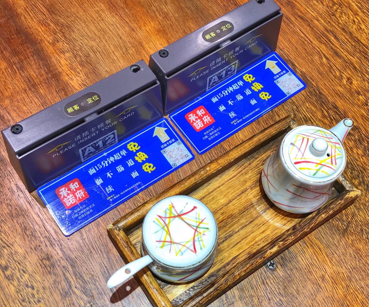 特别注意到 有提供一次性手套 很讲究呢 买单后会有一块候餐牌给你 将其插入桌面上的卡槽 服务员...