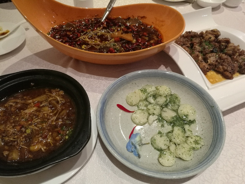 非常舒适的就餐环境,餐桌摆放保持了舒适的距离,装饰风格大气典雅,荠菜炒马蹄、人参烧碟鱼、山城毛...