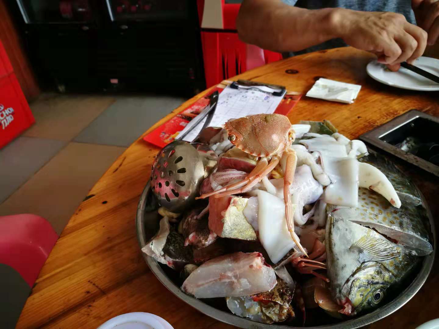 2人点了1套,有螃蟹、鱼、墨斗鱼、花格、虾,1篮青莱。味道鲜美,量大,撑肚了坚持到光盘。一