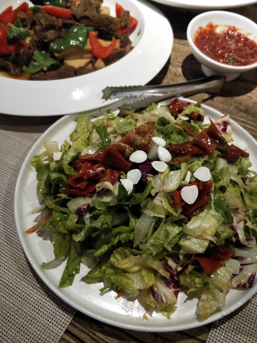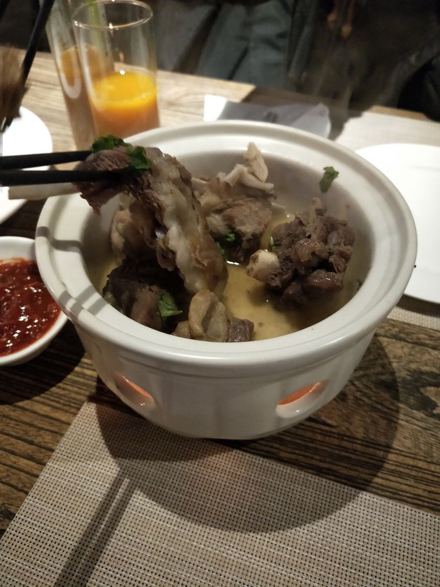 朋友聚会,从收藏的餐厅中选了半天,才选了这家。 自从内蒙回来已经快将近十年没吃过蒙餐了,这家餐厅看评论还不错。 餐厅分为两层,一楼布局偏西式,二楼才有点蒙古特色,可以当天二楼包场。菜单不多,就五六页纸,加起来二十个菜左右,饮料倒是不少。菜的味道还不错,但价格高了太多了,而且和我当年在内蒙吃的蒙餐不同,第一次吃到配辣椒酱的手把羊肉,味道有些与众不同。奶茶本来想喝的,但是一看价格实在太高了,所以也就算了,整餐吃下来个人觉得最好吃的是牛肉饼。当天二楼有表演,不知是免费的还是付费的。