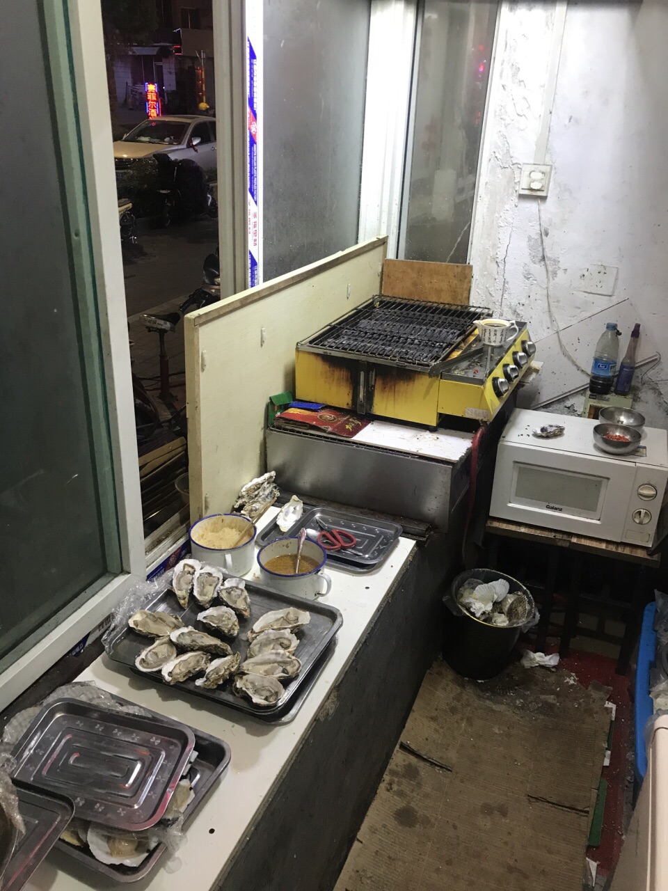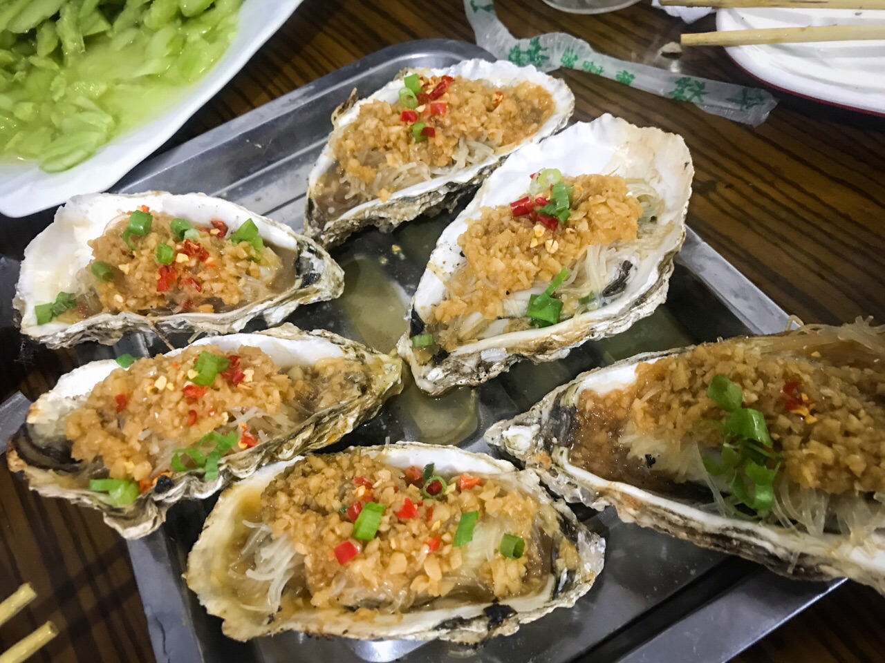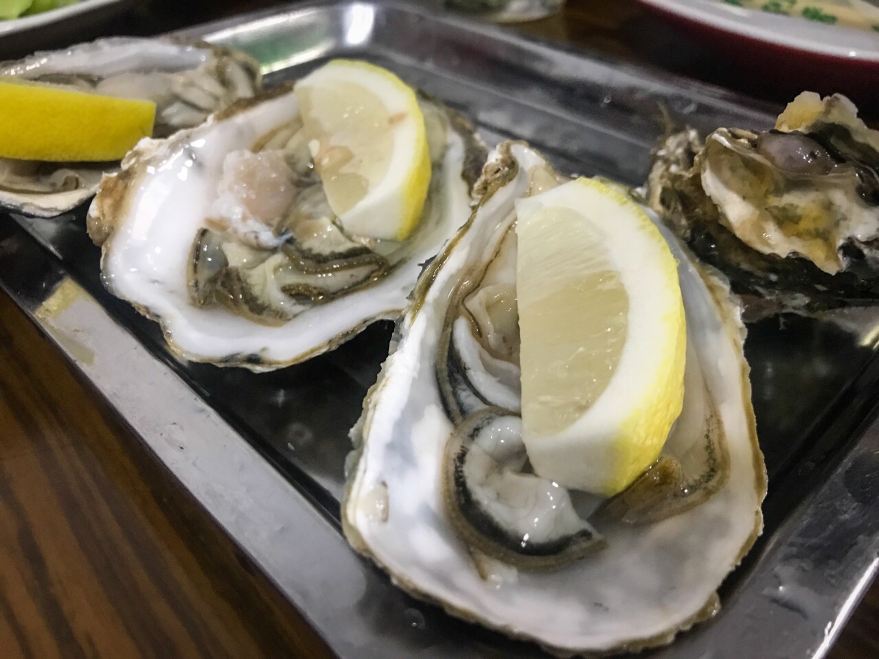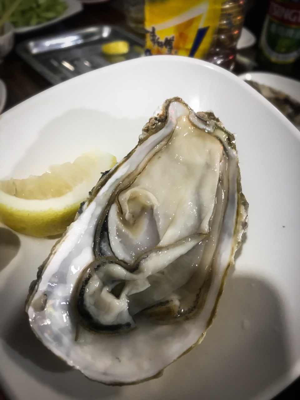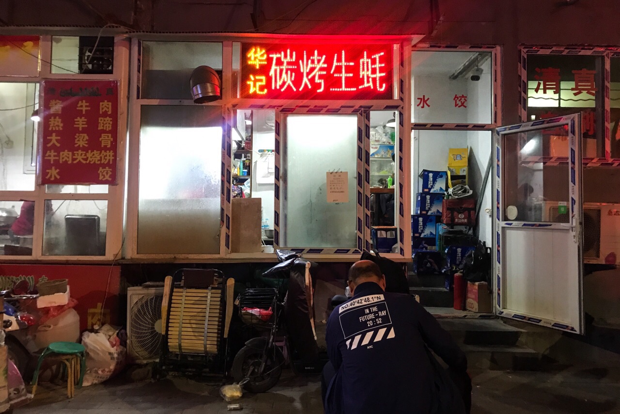 夏天的时候会选择过来夜宵,店面不大,只有几张桌子,往往会等个一两桌才能进去。主营生蚝、扇贝和其他一些三文鱼、鸟贝、海捕大虾等海鲜,有些东西要看季节供应,主食有牛羊肉水饺。刺身类品质都蛮不错,每天的货不一定相同,想吃啥可以和老板预定下。 「刺身生蚝」 放在最前面写是因为对它最满意,肥美度极佳,毫无腥味,挤一点柠檬汁滴上,一口吃进嘴里,满口海洋的气息! 「碳烤生蚝」 同样都是碳炉烧烤,老板的火候控制和蒜蓉汁调制比一般店要强,吃起来也很不错,要了两打还是迅速吃光。可能我预期太高,吃完没感觉到惊艳,但四星的好吃没问题; 「扇贝」 烤出来的蒜蓉粉丝扇贝,扇贝肥美,调味同样不错,比较推荐; 「凉拌黄瓜」 夜宵喝点小酒,必须得让老板拍个黄瓜当下酒小菜,去皮清拌,不孬; 「清真牛羊肉水饺」 忘了当时吃的具体是牛肉还是羊肉馅儿水饺了,在回民小区也算水平线之上,适合做夜宵主食;