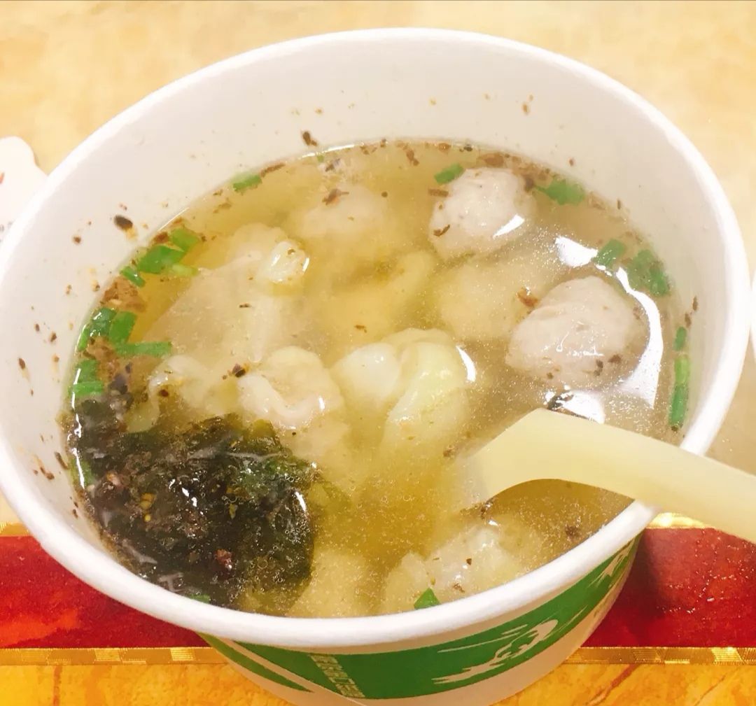 七福贡丸,各种丸子都在一碗里,选择困难症的福音,口感很弹很可口。 虾肉馄饨,中规中矩,能吃出来很新鲜七福贡丸,各种丸子都在一碗里,选择困难症的福音,口感很弹很可口。 虾肉馄饨,中规中矩,能吃出来很新鲜。 汤总体清清淡淡,尝了一口后,果断放了辣椒油。