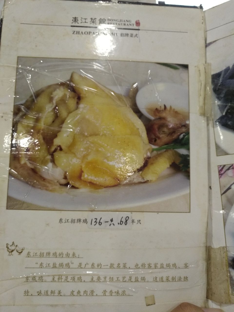 网友2018-12-09...真心的超级好吃 虽然价格有点贵了 但是鸡肉肥而不腻 吃起来很有嚼头 沾着酱油吃在北方是吃不到的第二次来吃东江菜馆了 每一次都不能错过的就是下图的东江招牌鸡 真心的超级好吃 虽然价格有点贵了 但是鸡肉肥而不腻 吃起来很有嚼头 沾着酱油吃在北方是吃不到的