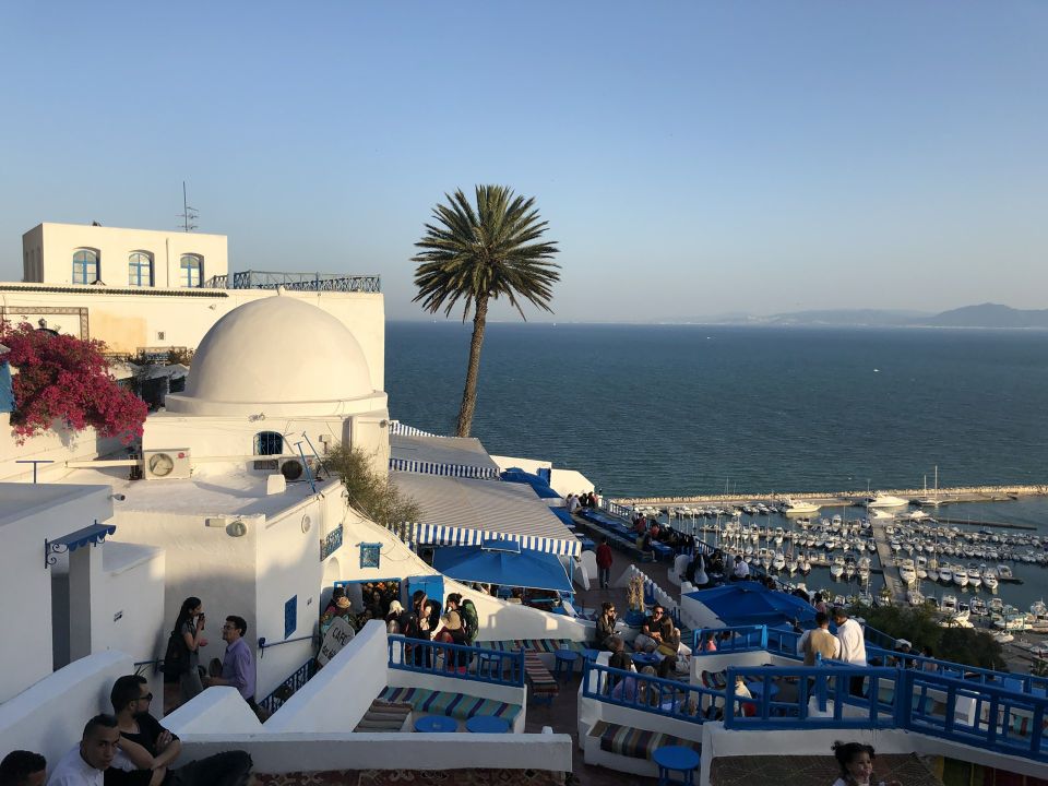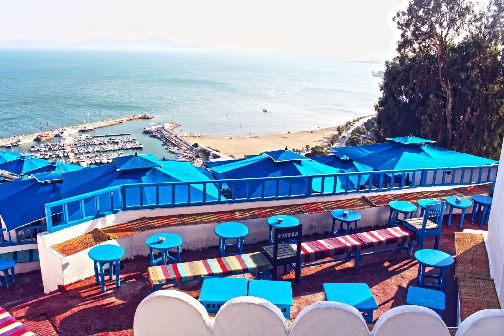 这家咖啡馆名叫草席咖啡馆,是突尼斯一家网红咖啡馆。它就坐落在海边,被一片蓝顶白墙的房屋所包围,说真的周围的环境和希腊爱琴海真的有点傻傻的分不清。在这里来上一杯咖啡,欣赏着美丽的地中海美景,悠闲着听着周围人的聊天,真的非常的舒适惬意。