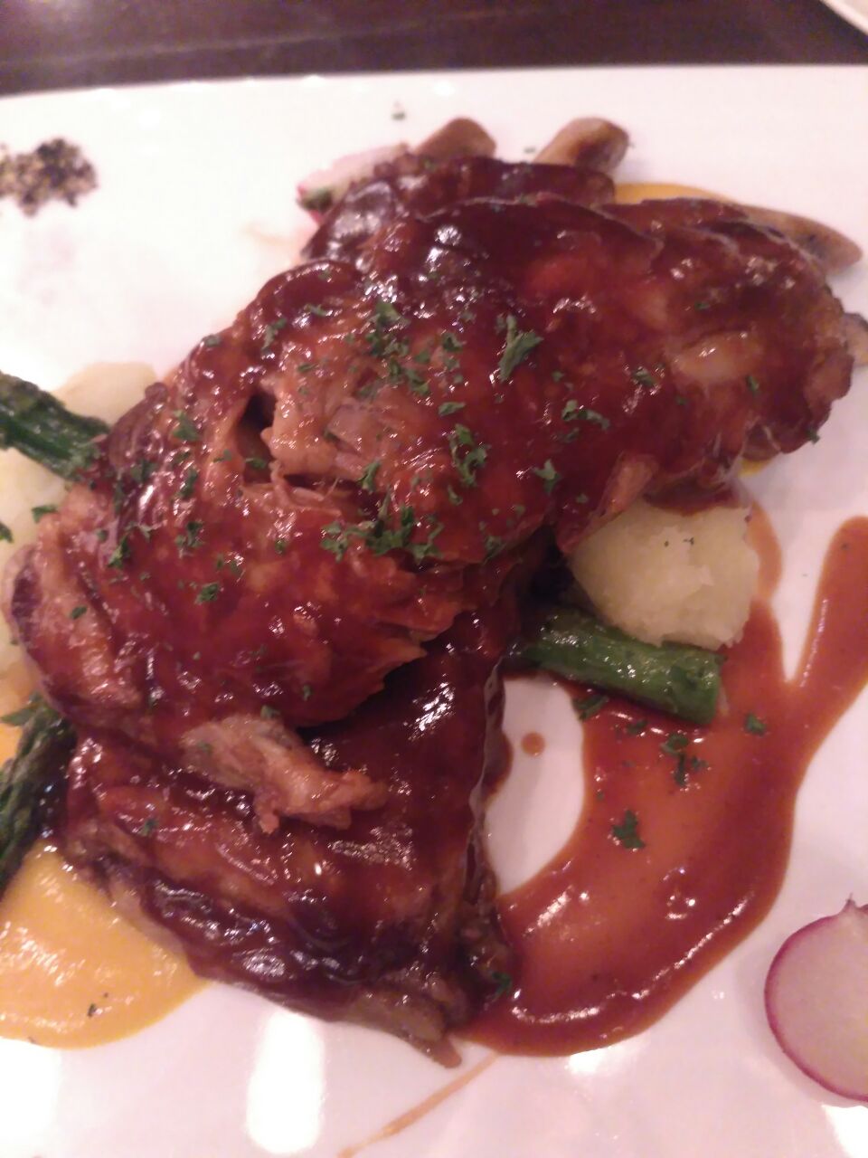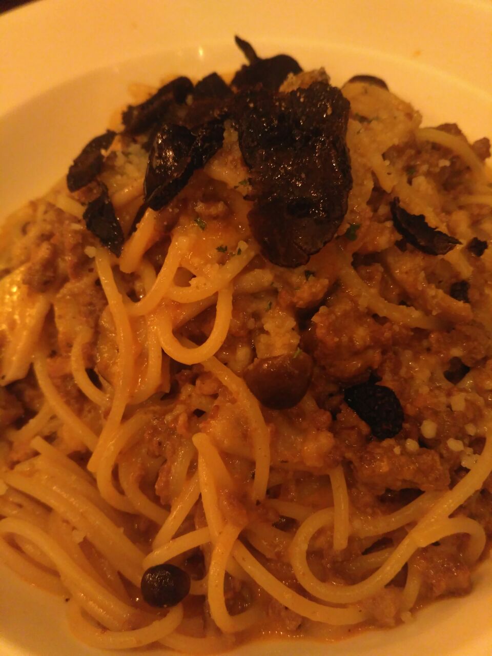晚间用餐,人不多,没想到里面还挺大的。没有选择招牌的鹅肝黑松露烩饭,,也没有选择黑松露温泉蛋匹萨。选择了黑松露博洛尼亚肉酱意大利面,还有猪肋排。意大利面上的黑松露是刨片的,味道不错,量也挺大。猪肋排比图片上的量大,肉质烧得很酥烂,配菜也不错。