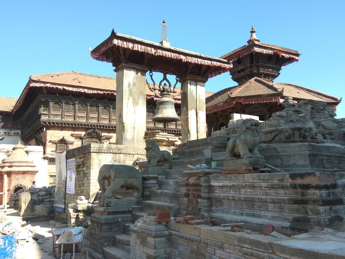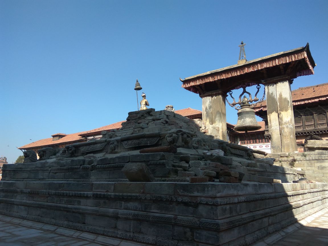 巴特萨拉女神庙已经在2015年的地震中被损毁了。 寺庙殿外,悬挂着高达一米的一顶铜钟