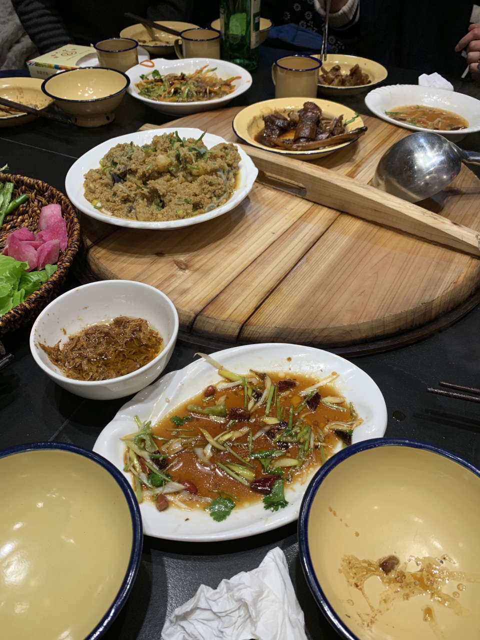 用餐中间有过一次二人转表演。朋友生日去的这里,说是又土又热闹朋友生日去的这里,说是又土又热闹!土的确是很土,服务员个个打扮得很艳俗,逢男的就叫大舅,逢女的就叫舅妈!我们8个人叫了一只鹅和几个小菜,围着一口大铁锅吃,鹅的味道还不错,小菜的味道一般。用餐中间有过一次二人转表演。