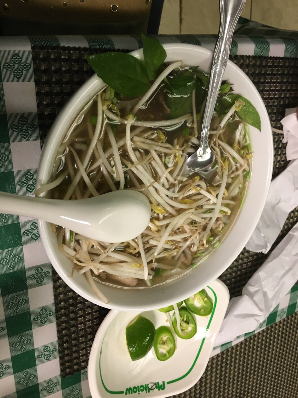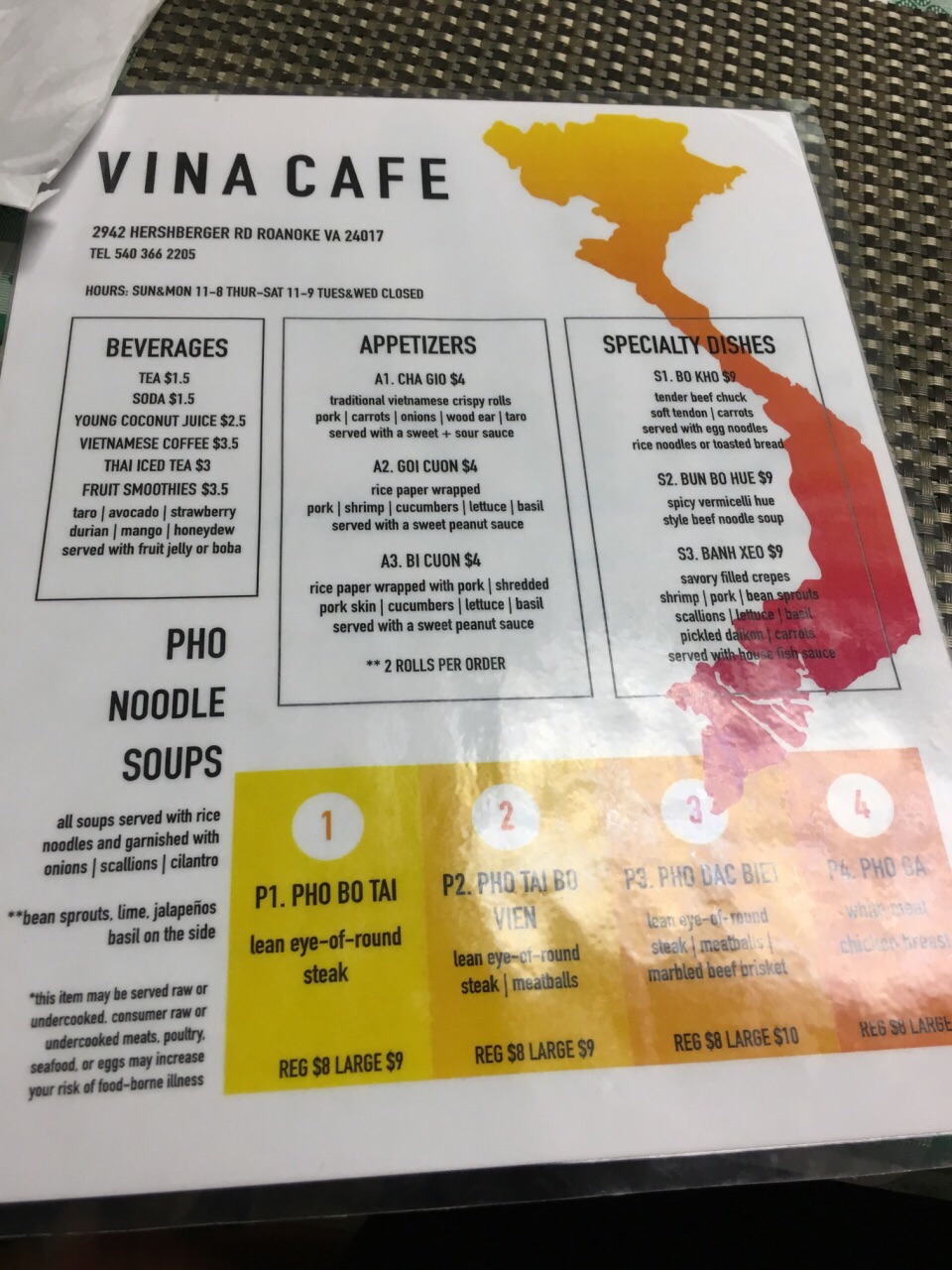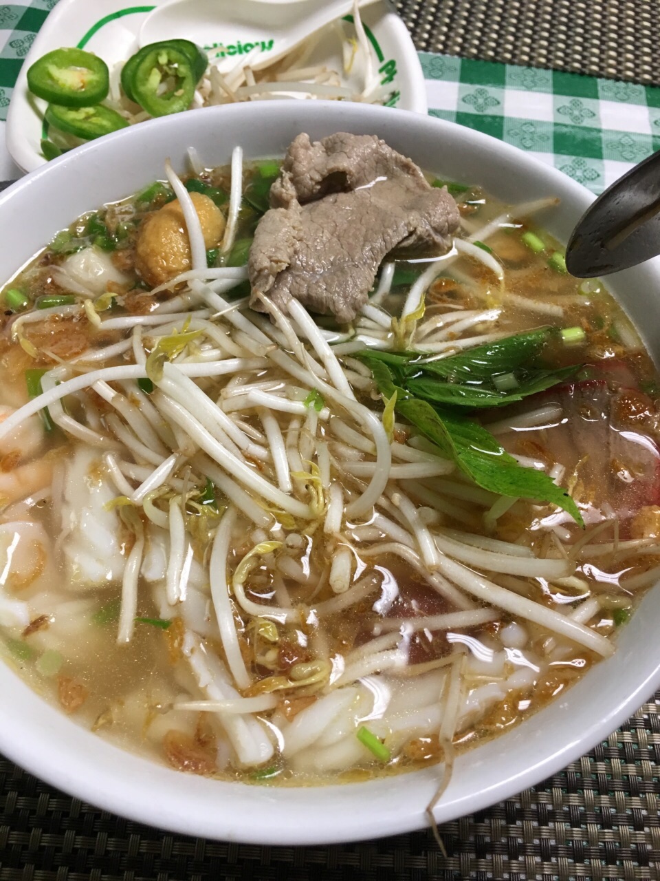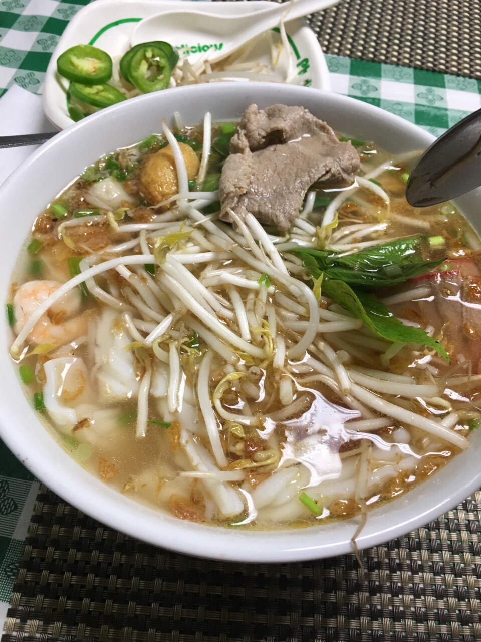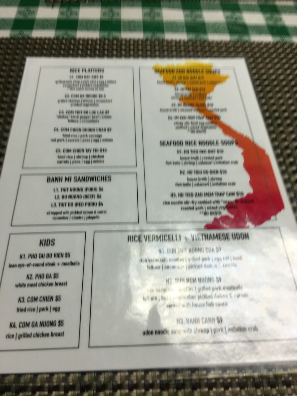 在美国待得时间久了,就会觉得西餐越来越难以承受,有时候还是亚洲菜,特别是东亚菜比较符合咱的口味,越南米粉也是一个很不错的选择,这家店在美国属于小店,但是比较正宗,因为老板是三个越南一家人,父亲烧菜,母亲坐镇,女儿负责收银和接待,他家关门还蛮晚的,地理位置并非闹市区,却要到九点才关门,我们去的时候,正好有一对当地白人夫妻在用餐,听来是老熟客了,菜单以越南米粉和炒饭面条为主,我们点了两份不同的米粉,口味很不错,主要就是感觉很正宗,米粉的量也不小,吃的很饱,而且很爽,胃一下子觉得好舒服啊,有机会再来这里吃米粉