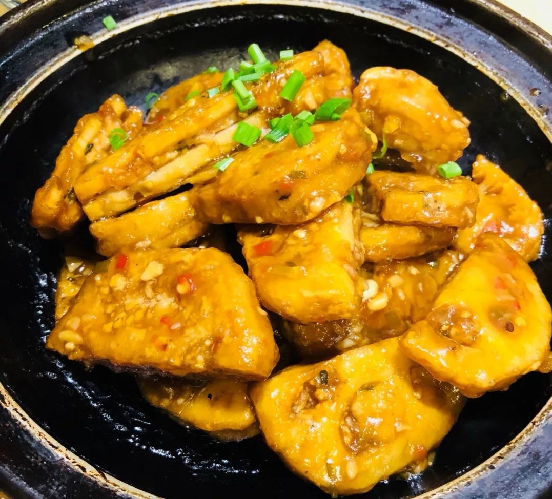 很喜欢芝士焗红薯玉米,甜甜的红薯铺在底层,偶有几个甜香玉米,上面一层满满的芝士,超级好吃很喜欢芝士焗红薯玉米,甜甜的红薯铺在底层,偶有几个甜香玉米,上面一层满满的芝士,超级好吃。 鱼香藕夹,比想象中的好吃,带点甜味的鱼香味。 石锅娃娃菜,味道很不错。 臭豆腐肥肠煲,确实很臭,豆腐非常嫩。